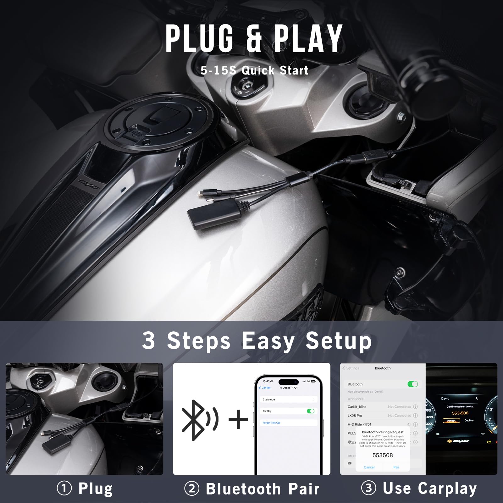 - Easy to Use: Easy and fast connection in 3 simple steps. Just plug and play, no need for any extra drive, apps, or troublesome system upgrades. After the first setup, the adapter will automatically activate the CarPlay wireless connection every time the harley motorcycle starts. Enjoy setup it once and for all.