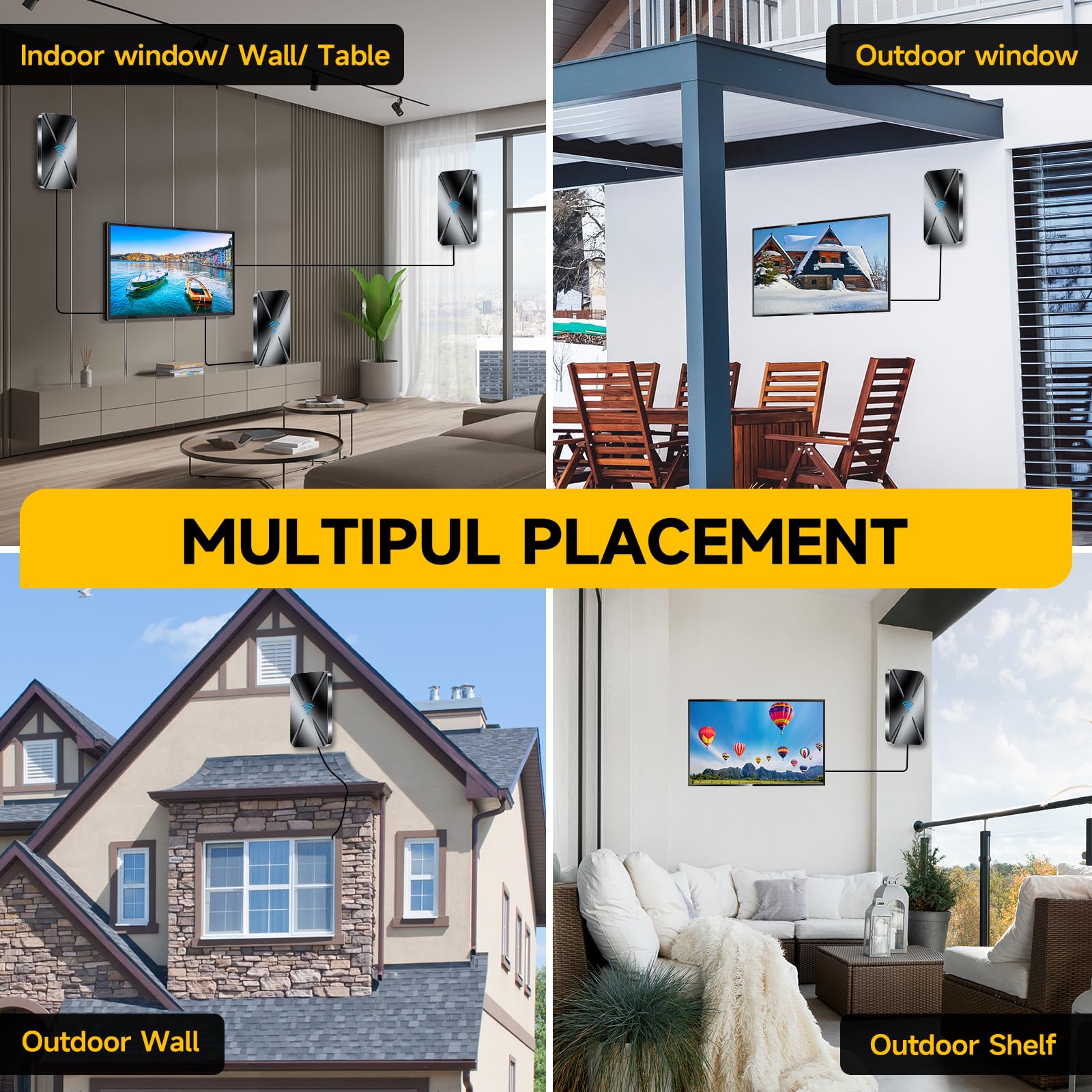 - Black Design& Multiple Placement: This antenna for smart tv can be placed almost anywhere in your home! Our team has developed smart tv antenna for your living space. The tv antenna for smart tv indoor can be placed directly on desktop, wall, or window, living room, bedroom, or outdoor, it doesn't take up space and doesn't need to worry about being damaged. And the design is perfect for your home.