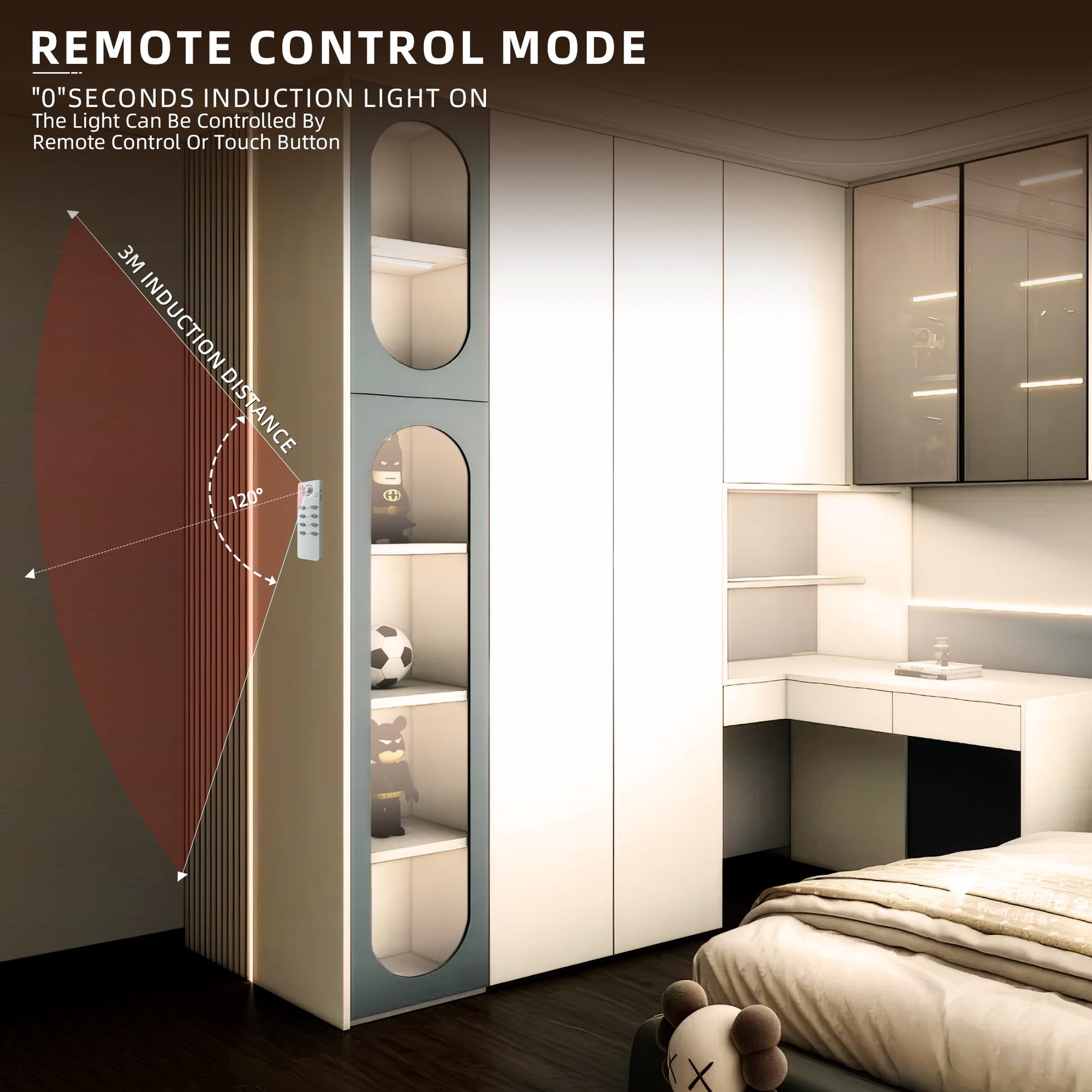 - 【Motion Sensor Remote Control】Unlike the common sensor-embedded lighting designs on the market, our products feature external remote sensors that allow you to control your lights more conveniently. Even if the remote control is 10M away from the light, the light can be turned on in advance by the remote control. .Day Mode and Night Mode can be choosed. The remote control turns itself off after 30 seconds. One remote control can control multiple lights