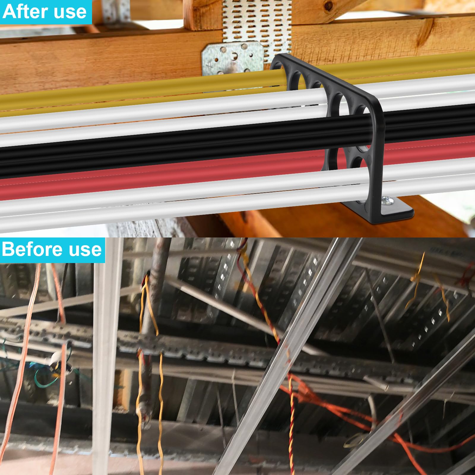 - Wide application: The electrical cable wire support brackets are designed with1” 10-hole design, can fit for various electrical cords wires and cables, especially adapted to NMB cable wires.