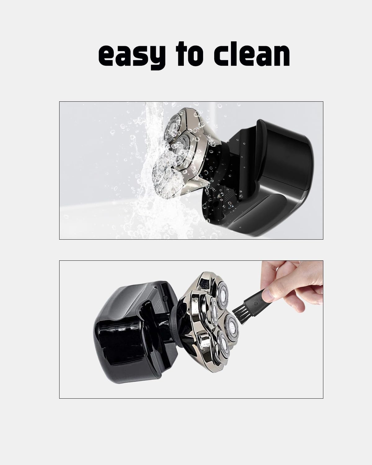 - 【Comfortable Shaving】Independent floating blades offer unparalleled contouring on head and face, 360 degrees without dead ends remove your beard/hair gently, painlessly and more clean. The hypo-allergenic blades are ideal for men with sensitive skin, offering a comfortable shave without irritation