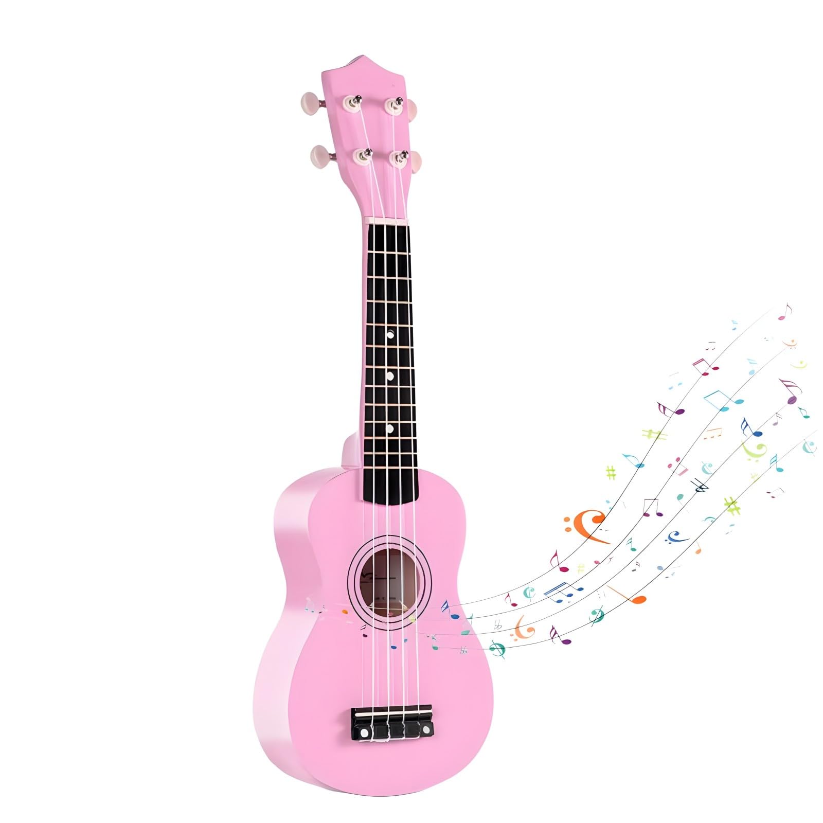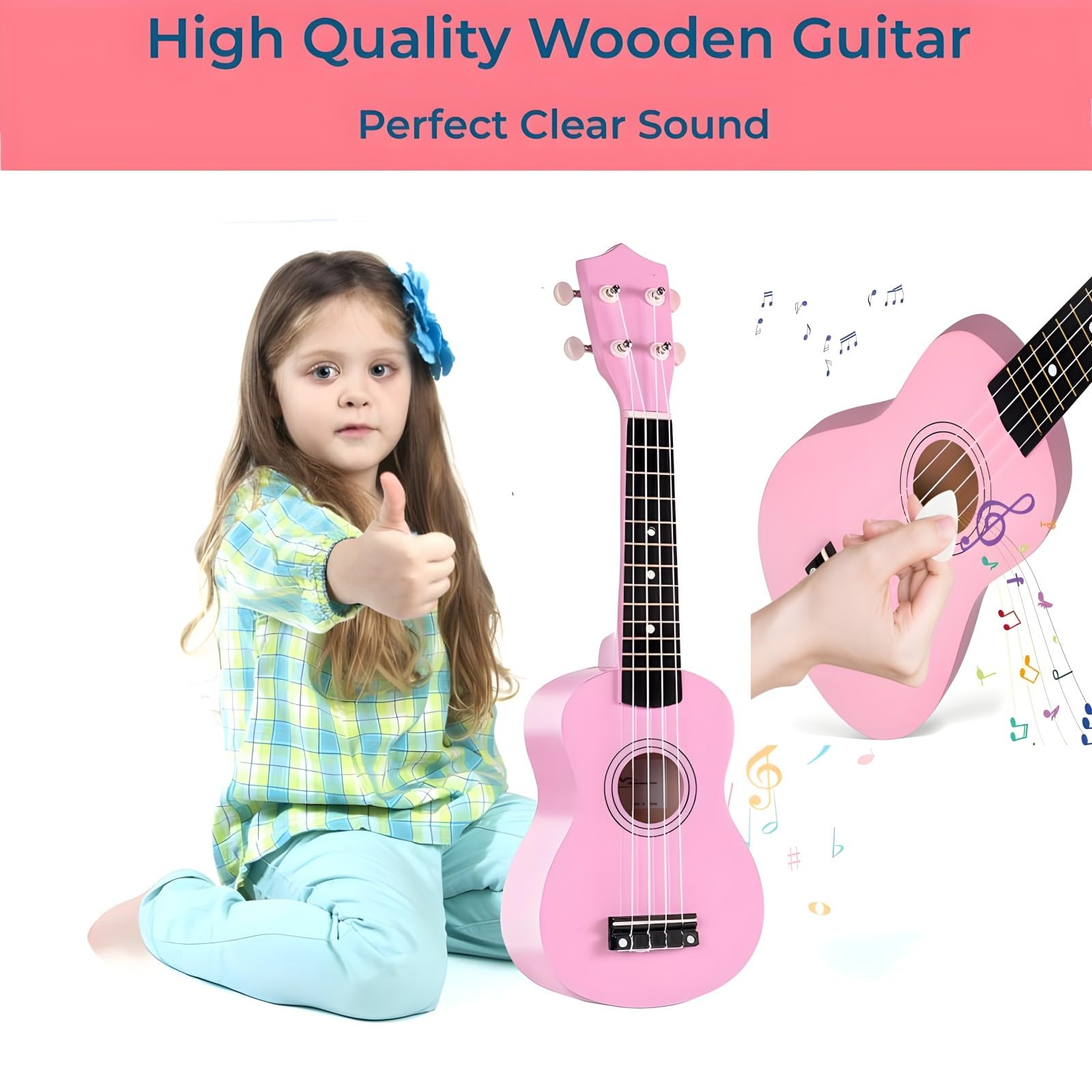 - 【Great Wooden Material】The guitar is made high quality wooden, has a clear sound, comes with 4 plastic strings, not easy to break. Comfortable grip and chord distance, gliding fret, coating surface design prevents fingers being hurt. Kids musician can make their own music, sing along to their heart's content.