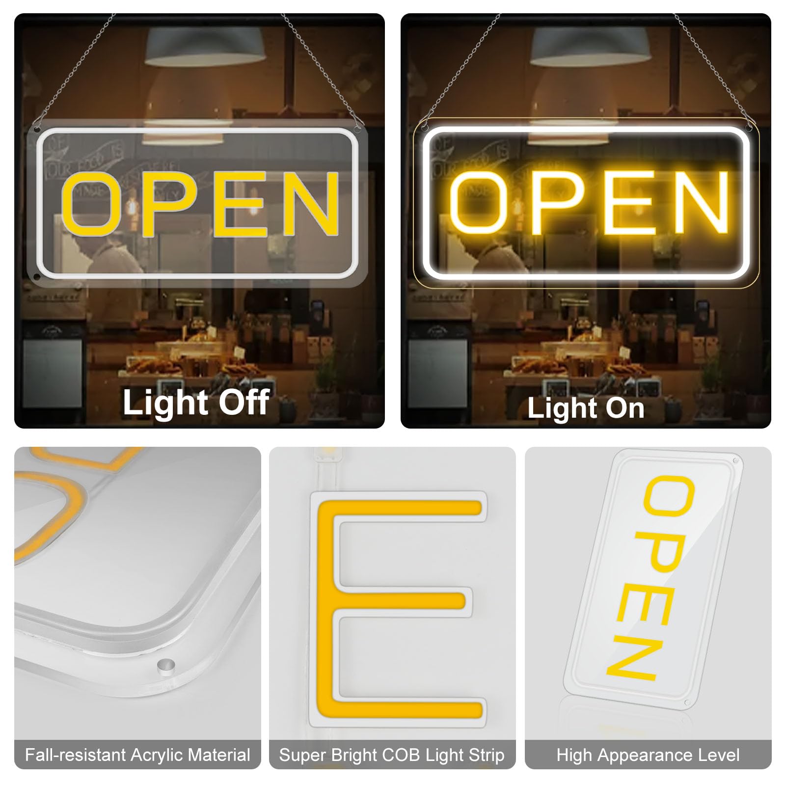 - [ Ultra-bright ] : Neon open sign consists of a White and Yellow with COB chips; It is much brighter and most cost effective than regular LED offers a great visibility even in daylight