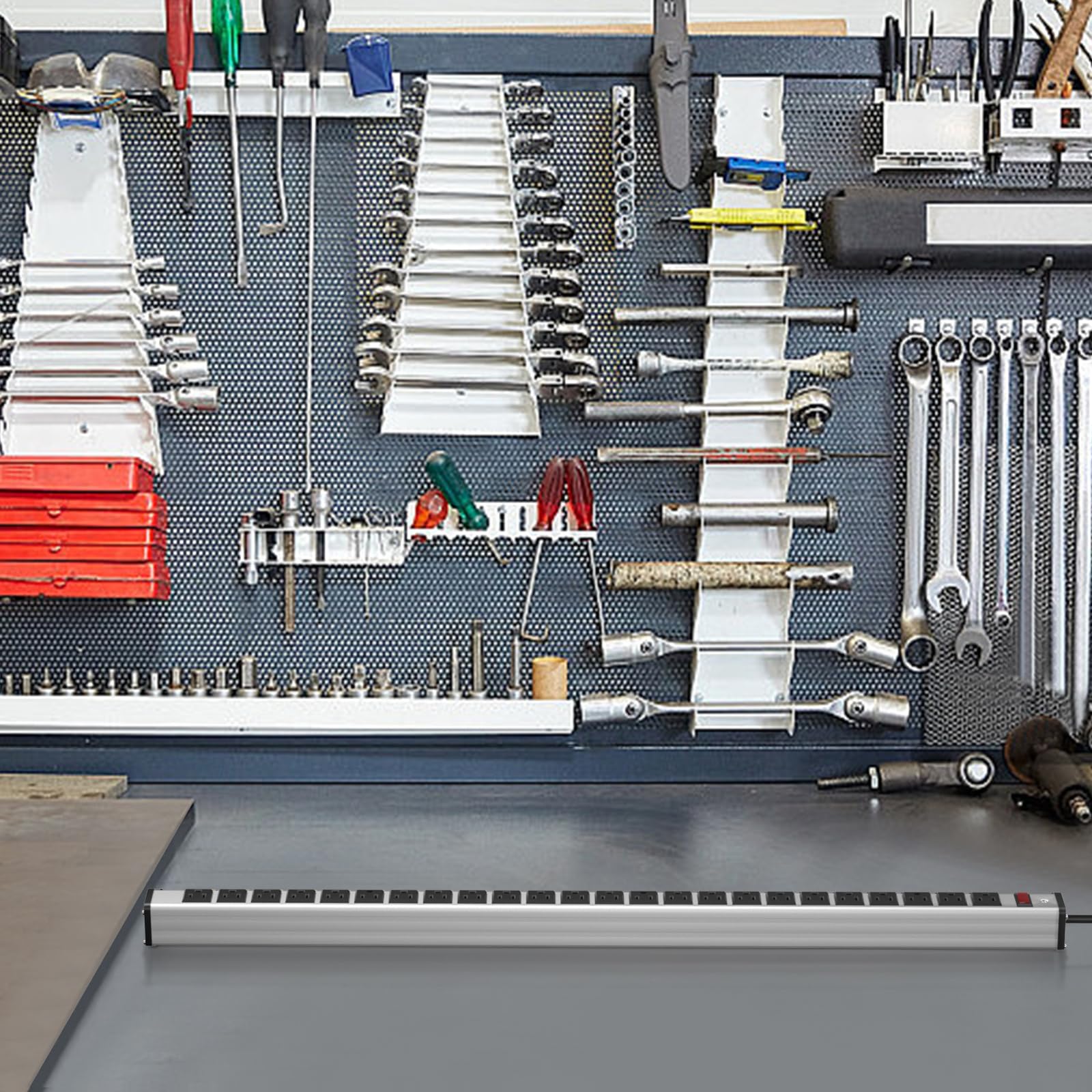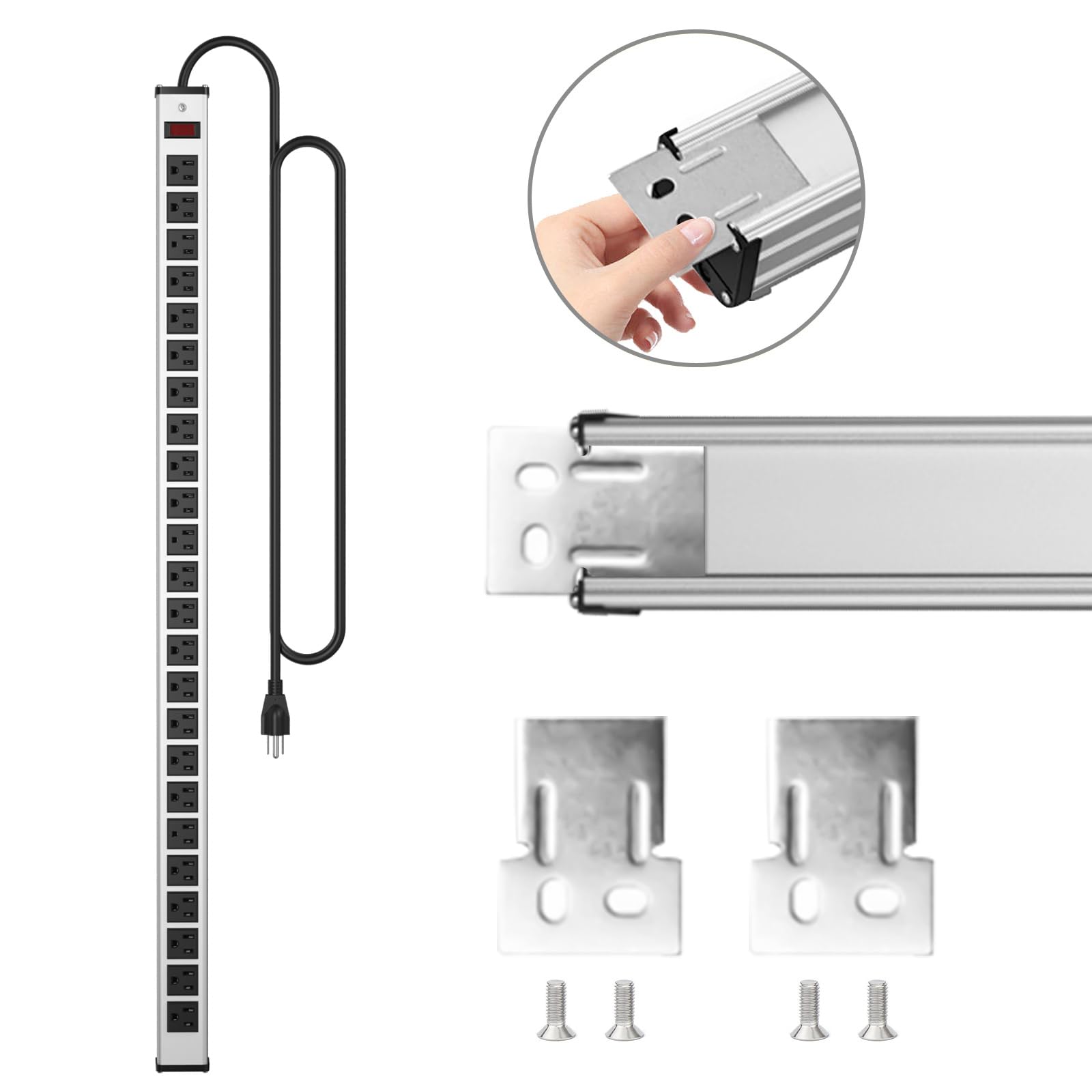 - 【Heavy Duty Power Strip】24 outlets surged aluminum alloy power strip,the unit optimally transfers power and helps keep plugged-in devices safe,24 AC Outlets (15A) Ideal for Transformer/Adapter Use