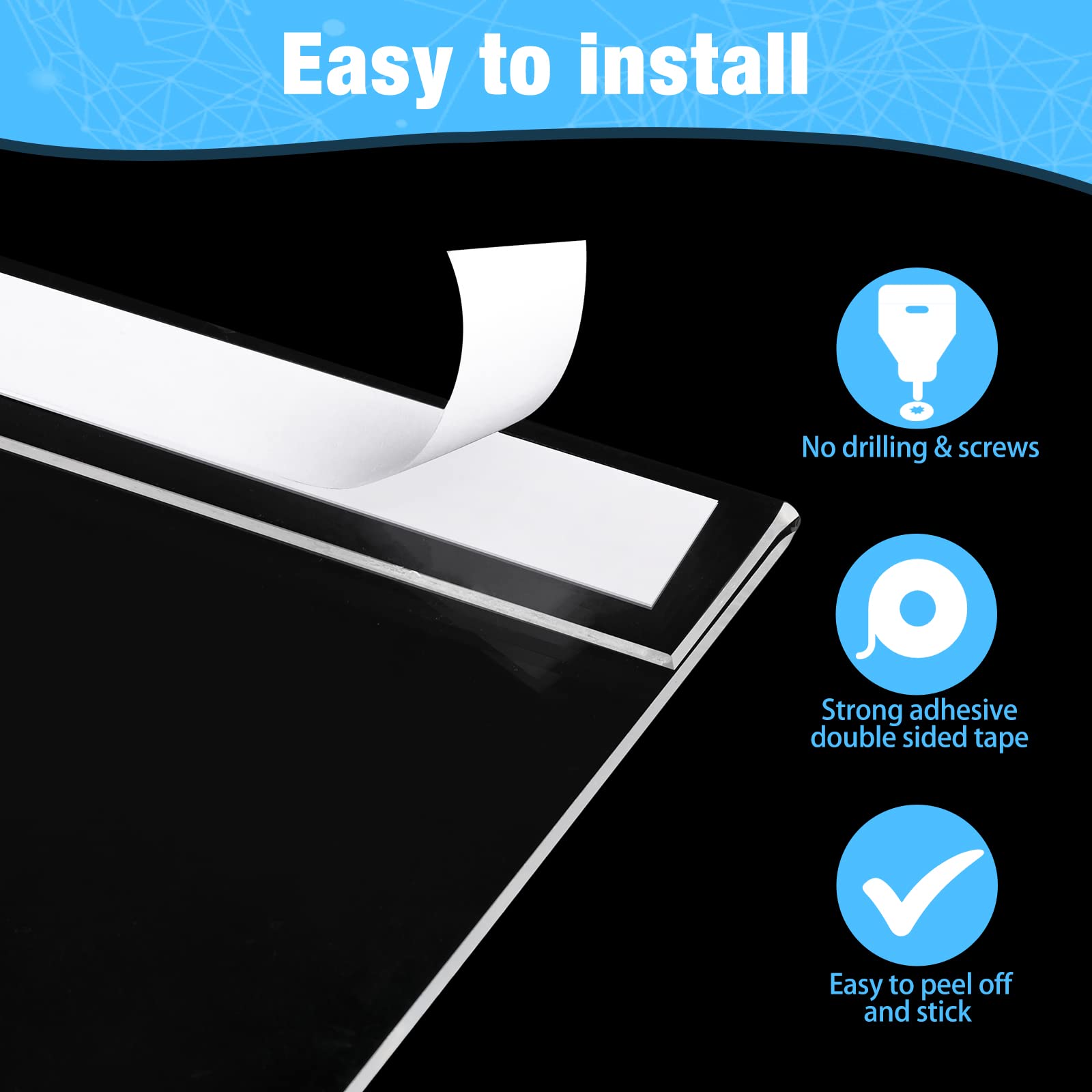 - Sufficient quantity: there are 24 pieces 5 x 7 Inch acrylic sign holders and 48 pieces strong permanent adhesive strips in the package, enough quantity fit for your daily use, suitable for displaying the information on the wall, and easy to change the information out of the holders
