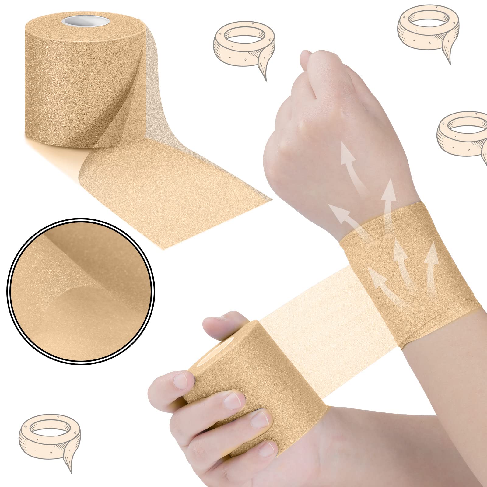 24 Pieces Foam Underwrap Tape Sports Prewrap Athletic Tape Foam Pre Wrap for Ankles Wrists Hands and Knees(Beige)