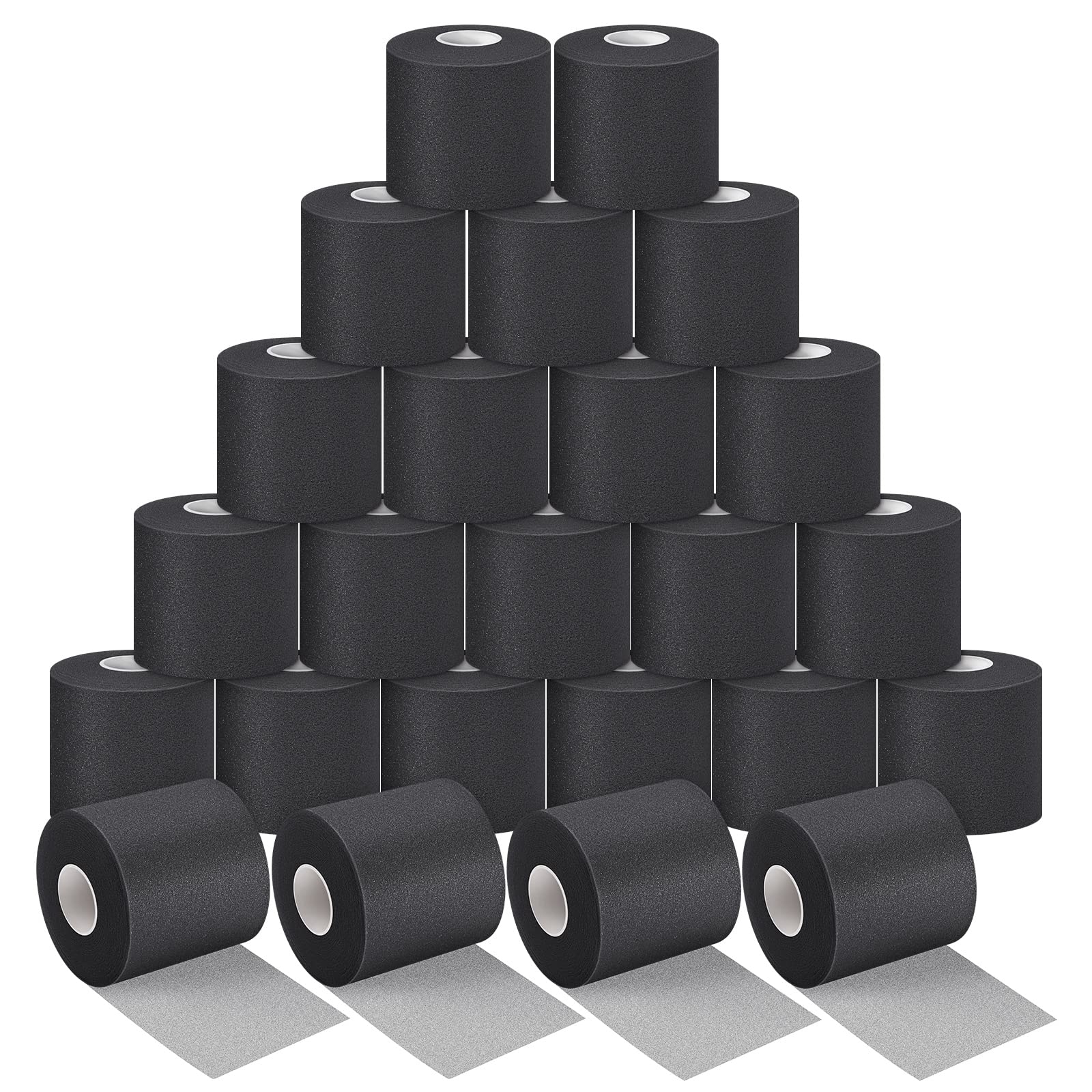 24 Pieces Foam Underwrap Tape Sports Prewrap Athletic Tape Foam Pre Wrap for Ankles Wrists Hands and Knees(Black)