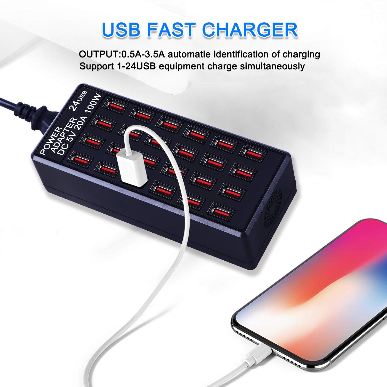 24-Port 100 watt (20 A) USB Charging Station, Home Desktop Fast Charger, Multiple Chargers, Suitable for Hotels, Shops, Schools, Shopping malls and Travel