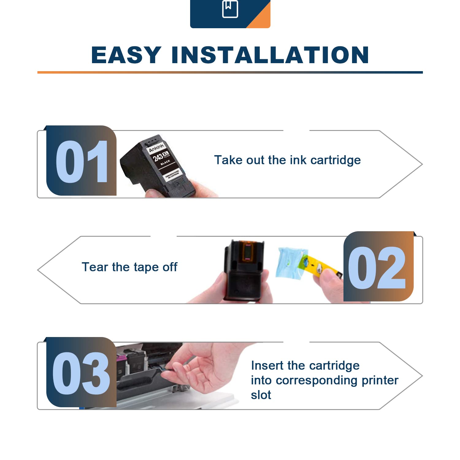 - 243 BLACK INK CARTRIDGES, Each Ankink 243XL ink printer cartridges is equipped with the upgraded chip, and is strictly tested in production to ensure that each pg243 black ink cartridges can be recognized and used by the printer.Smooth printing without paper jam or ink leakage.