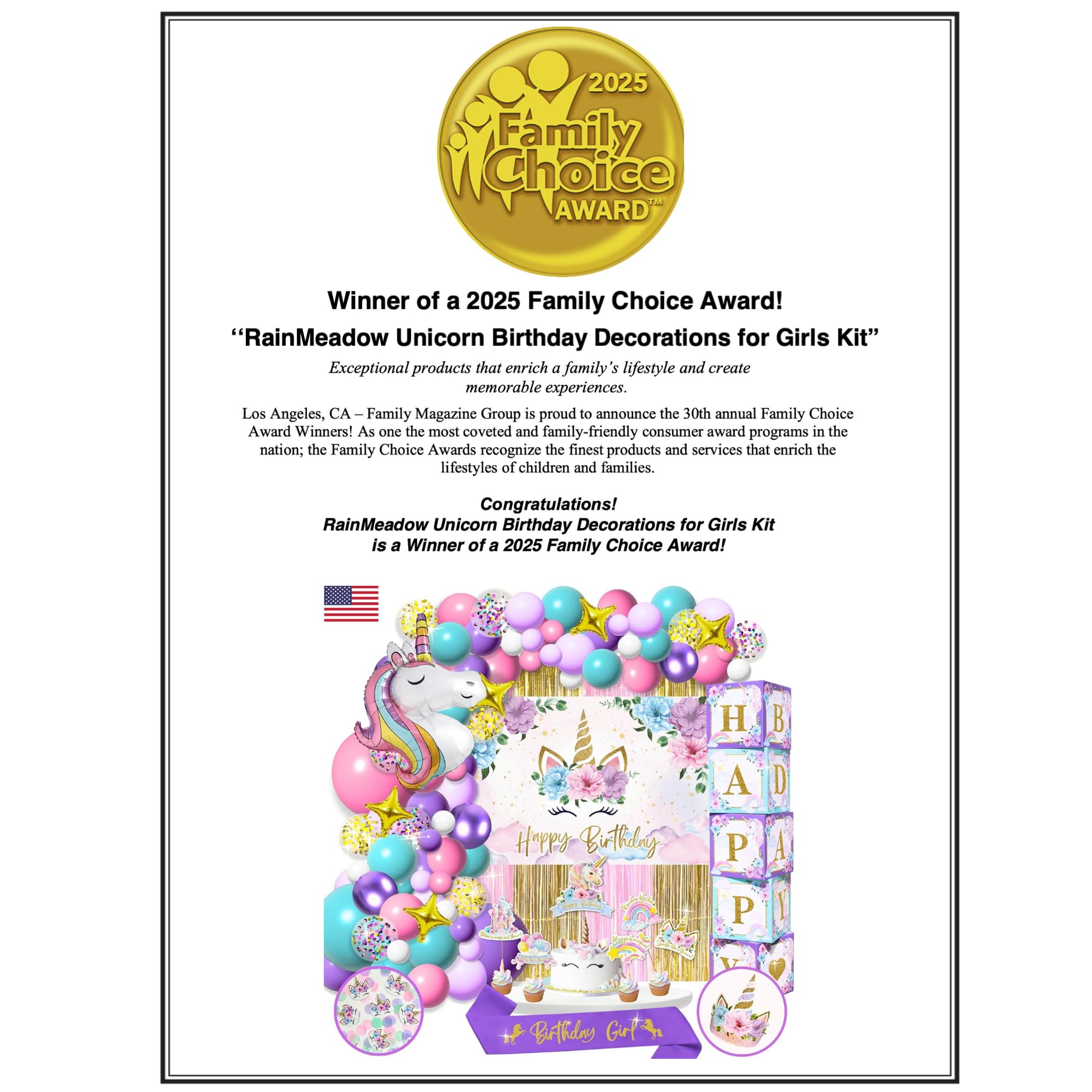 - Winner of the 2025 Family Choice Award – Our Unicorn Birthday Decorations for Girls Kit was recognized among the best in children and parenting products in the US