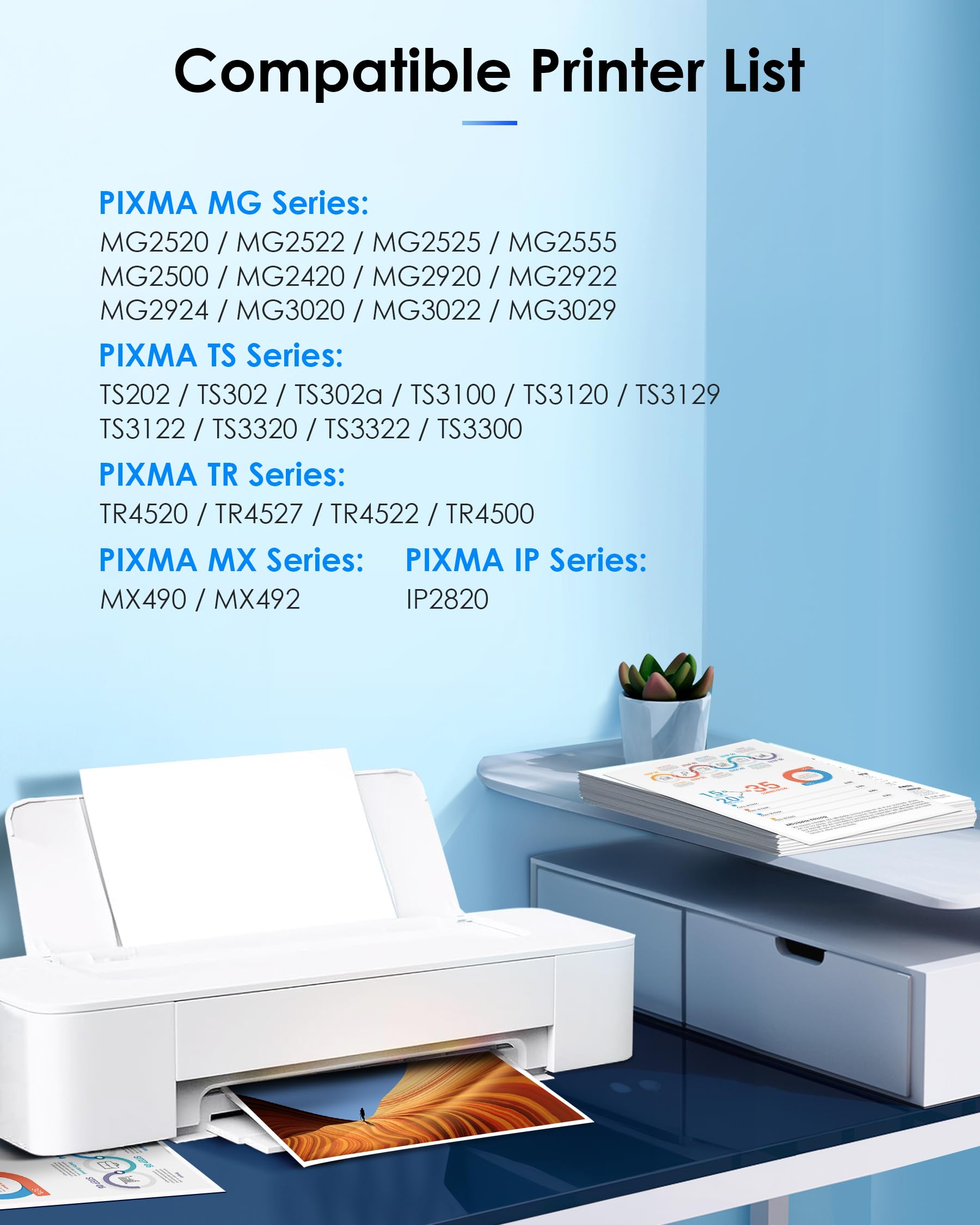 - Compatible for Canon TR4520, TR4527, TR4522, TR4500, MX490, MX492, IP2820, MG2520, MG2522, MG2525, MG2555, MG2500, MG2420, MG2920, MG2922, MG2924, MG3020, MG3022, MG3029, TS202, TS302, TS302a, TS3100, TS3120, TS3129, TS3122, TS3320, TS3322, TS3300