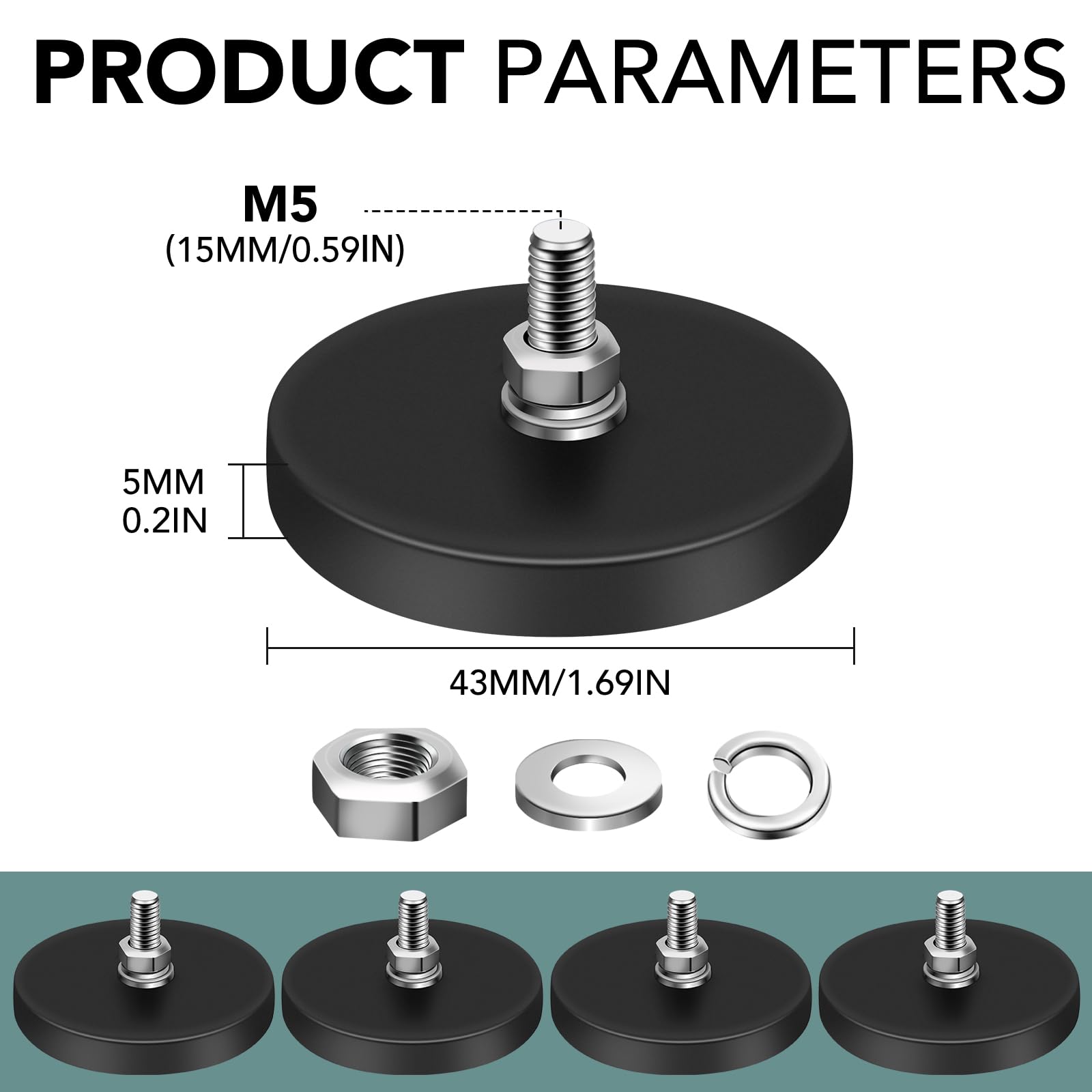 24Pack Rubber Coated Magnets, 30LBS Rubber Coated Neodymium Magnets with M5 Magnetic Assembly Base for Light Bar Mirror Camera Tool(1.69 Inch) ", since the Item received has an M5 thread.