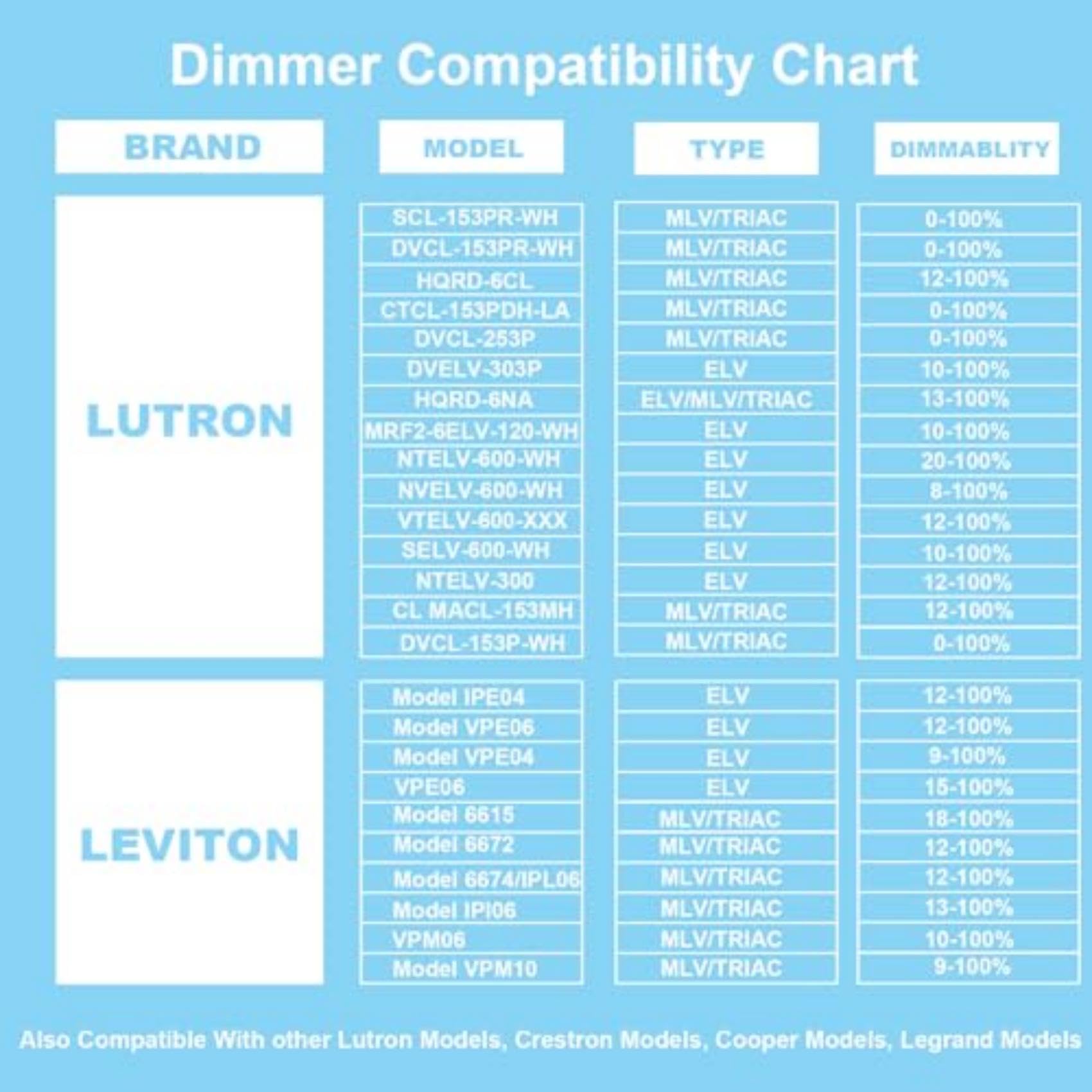 - Strong compatibility: This 192W 24V Dimmable LED Driver is compatible with Lutron Switches DVCL-153P/CTCL-153P/SCL-153P/DVCL-253P/SELV-300P. You will be able to find it running smoothly with all thoes switches. What are you waiting for? Get some and lighting your rooms!