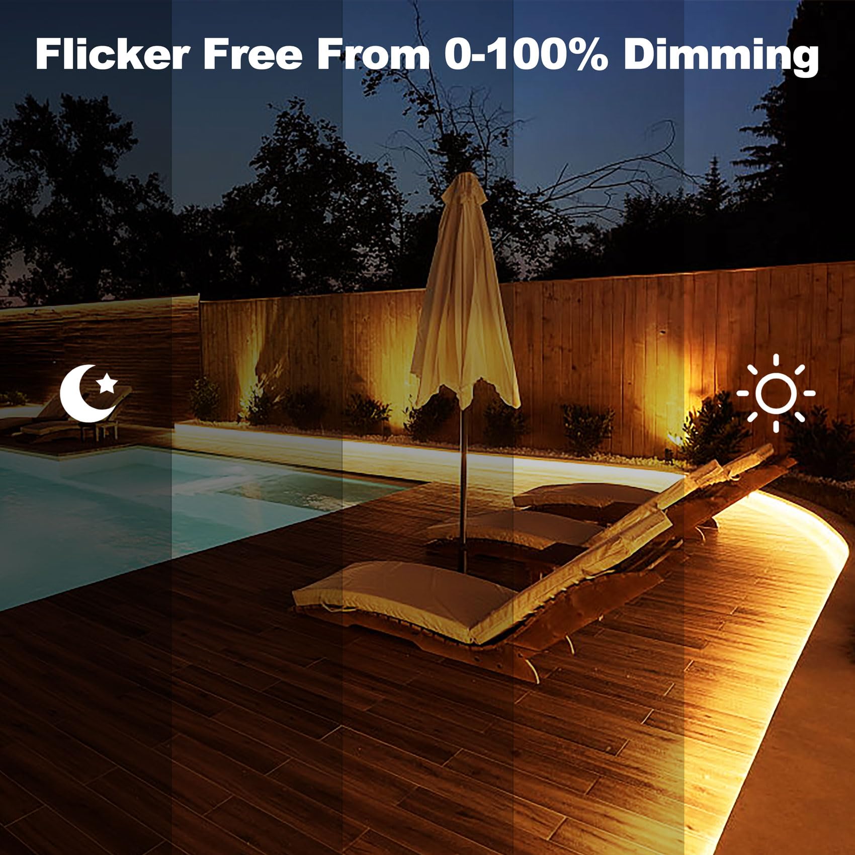 - Stable Output: Our Dimmable LED Driver conver 120V AC to 24V DC 0-100% smooth flicker free dimming for full range,traic dimmable power supply support DC 24V LED Lighting such as LED strips, modules, light bars, puck, under cabinet and other LED accent lights.