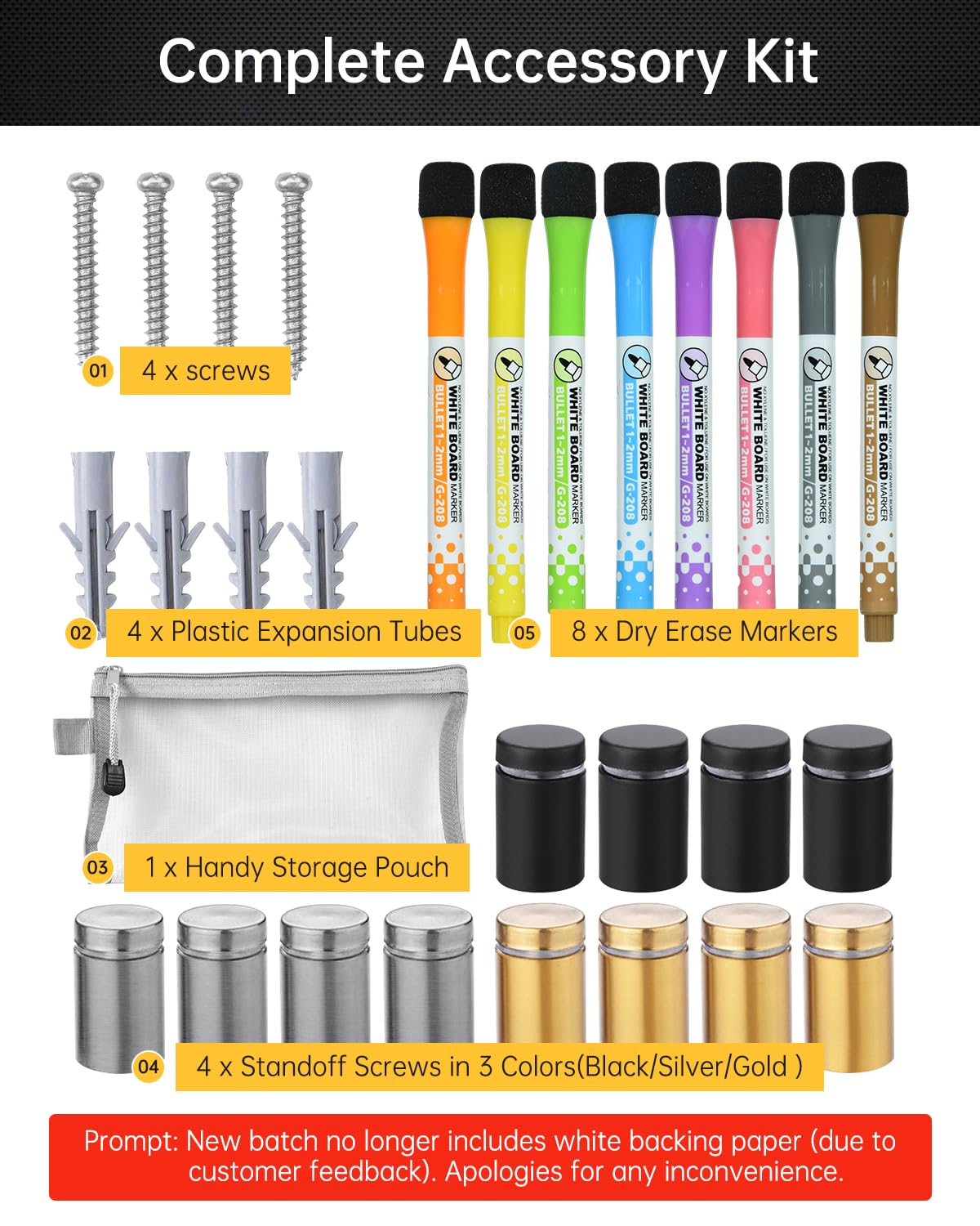 - Complete Accessory Set: Includes 8 colorful dry-erase markers, an eraser, and multi-color mounting screws to suit your decor.