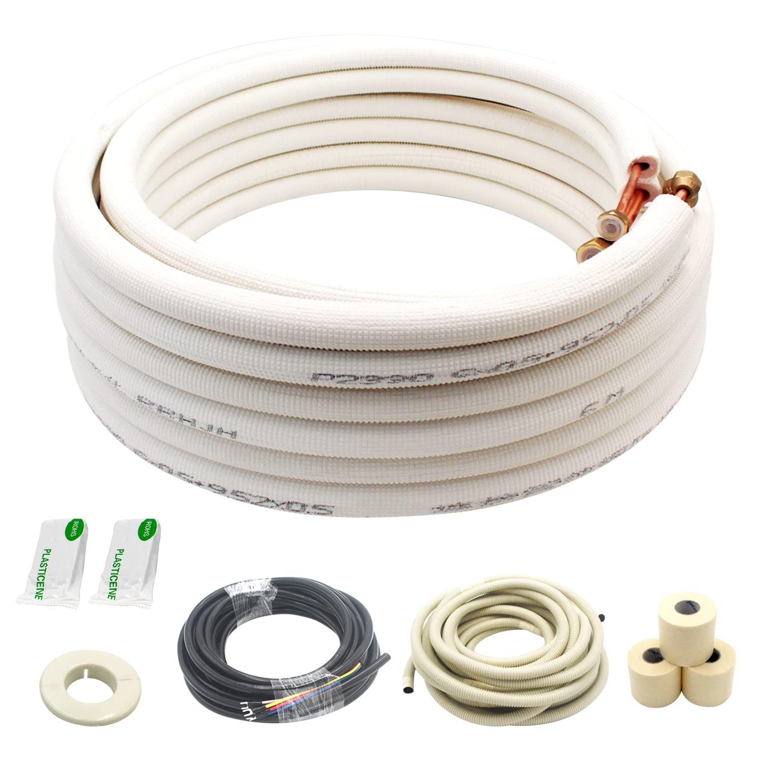 25 Ft Mini Split Line Set.Air Conditioner Copper Tubing Pipes Extension Set, 1/4" & 1/2" 3/8" PE Thickened for AC and Heating Equipment Insulated Coil Line Set HVAC Refrigerant with Nuts. (1/4+1/2)