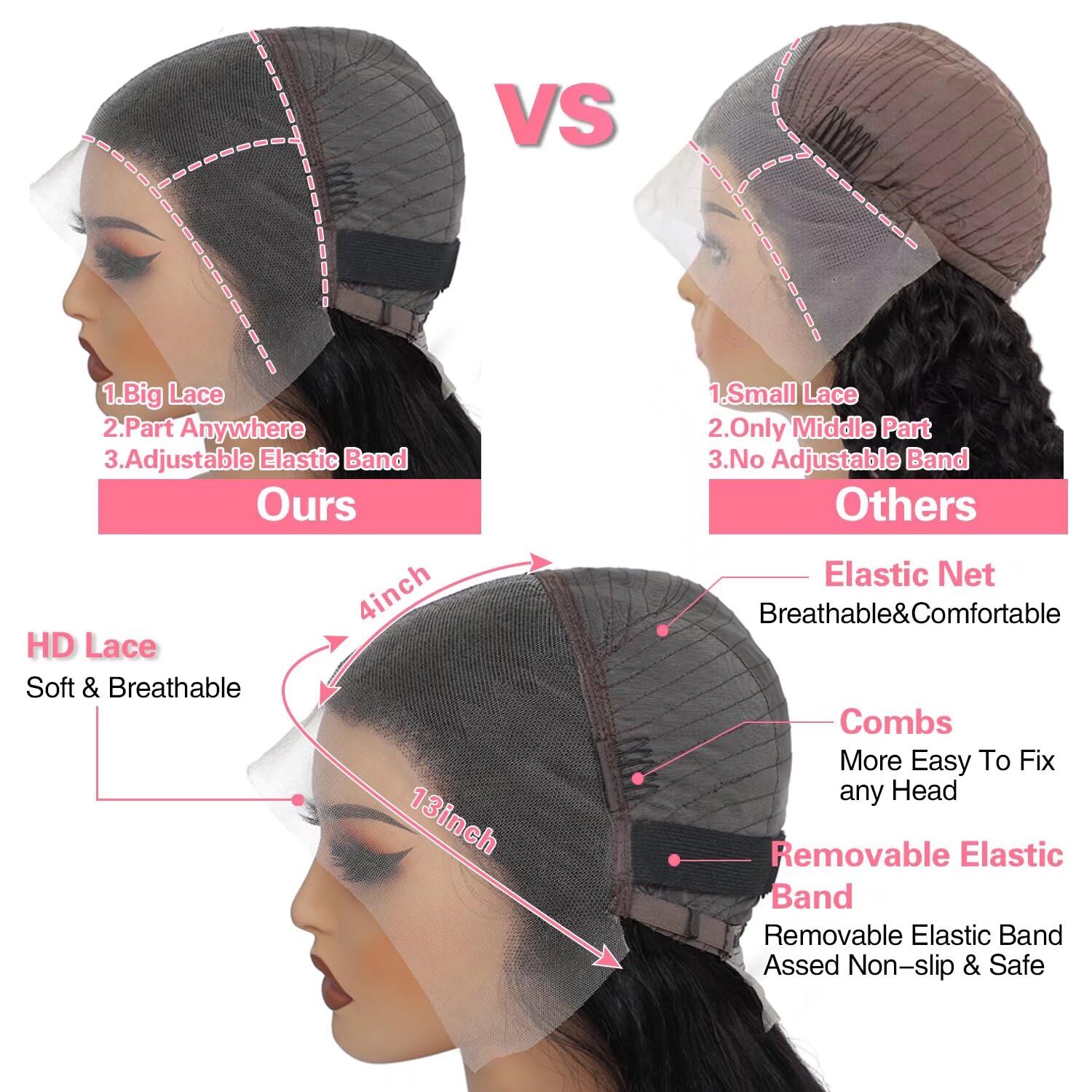- Water Wave Glueless Wigs Human Hair Cap Size: Water Wave Lace Front Wigs Human Hair; Deep Wave Wig Adjustable For All 21.5 To 23.5 Inch; Has Glueless Straps Fit On Small; Medium And Big Head Friendly; Lace Front Wig Human Hair Curly; Wet And Wavy Human Hair Wig