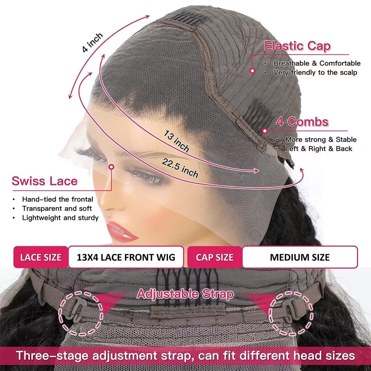 - 3.Wig Cap: Deep Wave Glueless Wigs Human Hair Pre-Plucked, Medium Cap Size(22 Inch - 22.5 Inch), Fit Most People, With 4 Combs And Two Adjustable Straps Make It Easy To Install, Breathable & Durable Lace Material Make It More Comfortable
