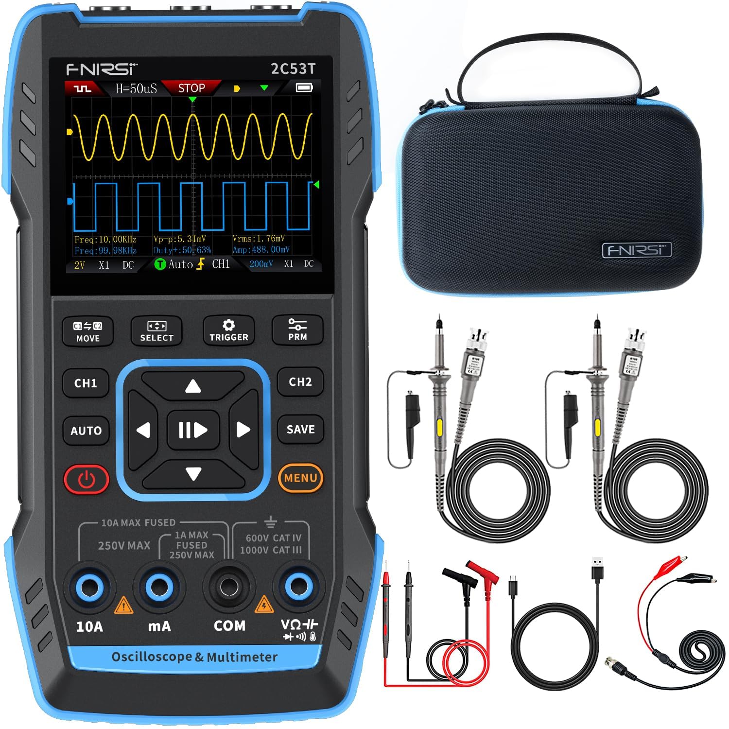 - [Newly Upgraded] Upgraded with higher parameters on the basis of 2C23T, 2C53T is a full-featured, highly practical 3-in-1 dual-channel digital oscilloscope. It is equipped with three major functions: oscilloscope, multimeter and signal generator
