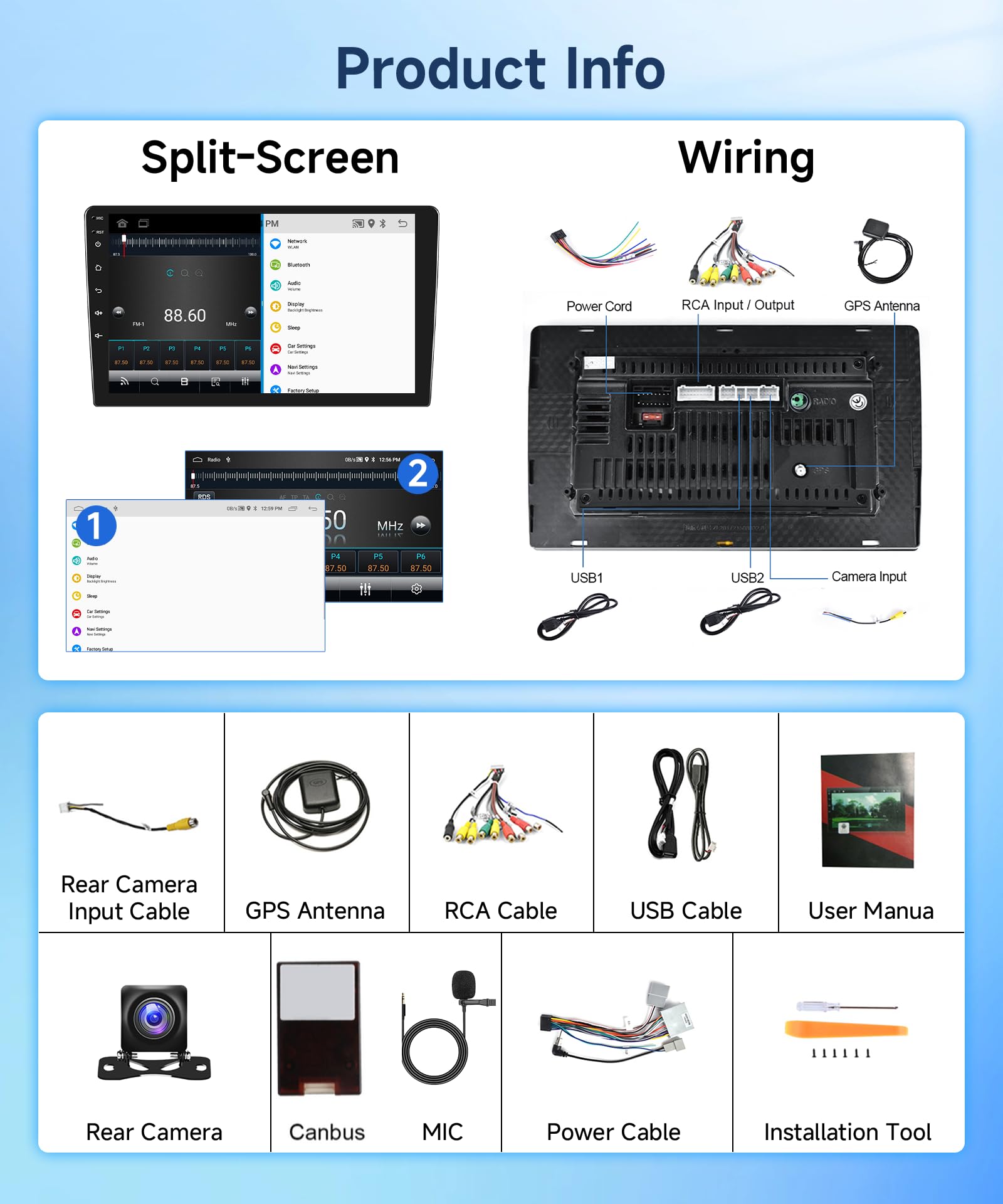 - Rear View Camera: Android for 2012 Ford Escape radio with backup camera, with easy installation and operation rear-view camera, when the vehicle shifts into reverse,for 2011 Ford Escape ord Kuga Mazda Tribu car stereo screen will automatically display the reverse image and record the traffic, make your daily reversing safer and more convenient.