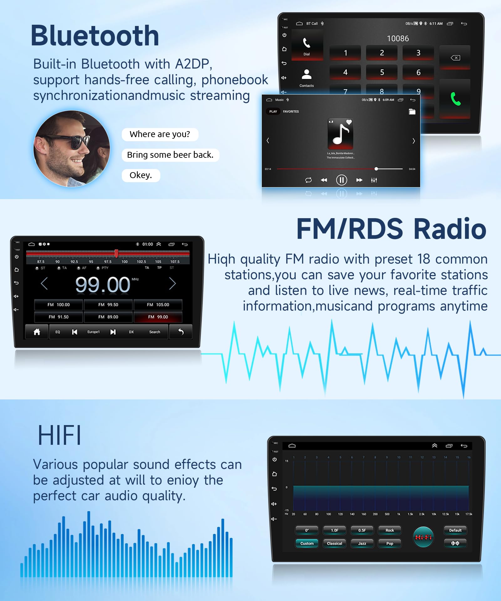 - Bluetooth & FM Radio & EQ: for 2010 Ford Escape radio with bluetooth, connect to your phone via Bluetooth for hands-free answering and making calls, playing music intelligently. for 2007 Ford Escape radio with FM radio, 18 preset stations, you can listen to real-time traffic, news broadcasts, weather forecasts etc.Support a variety of EQ sound effects scene selection, Frequency division adjustment shocking surround panoramic.