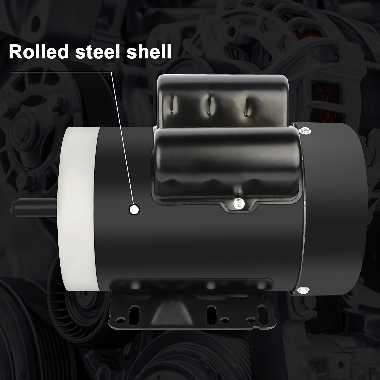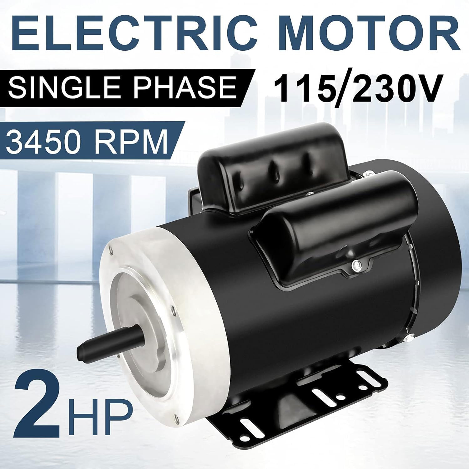 2HP Electric Motor 3450 RPM General Purpose Single Phase Motor 56C Frame 115V/230V 5/8" Shaft Diameter Rolled Steel Shell TEFC 60HZ