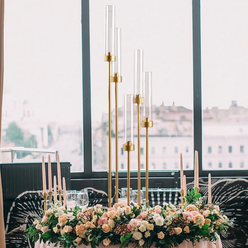 - Assemble Needed:These tall candle holders for the wedding centerpiece stand are made from a few different segments. The gold wedding centerpieces is very easy and interesting for DIY. Just attach the metal rods to the base and secure the candle cups to enjoy a stable and captivating display;