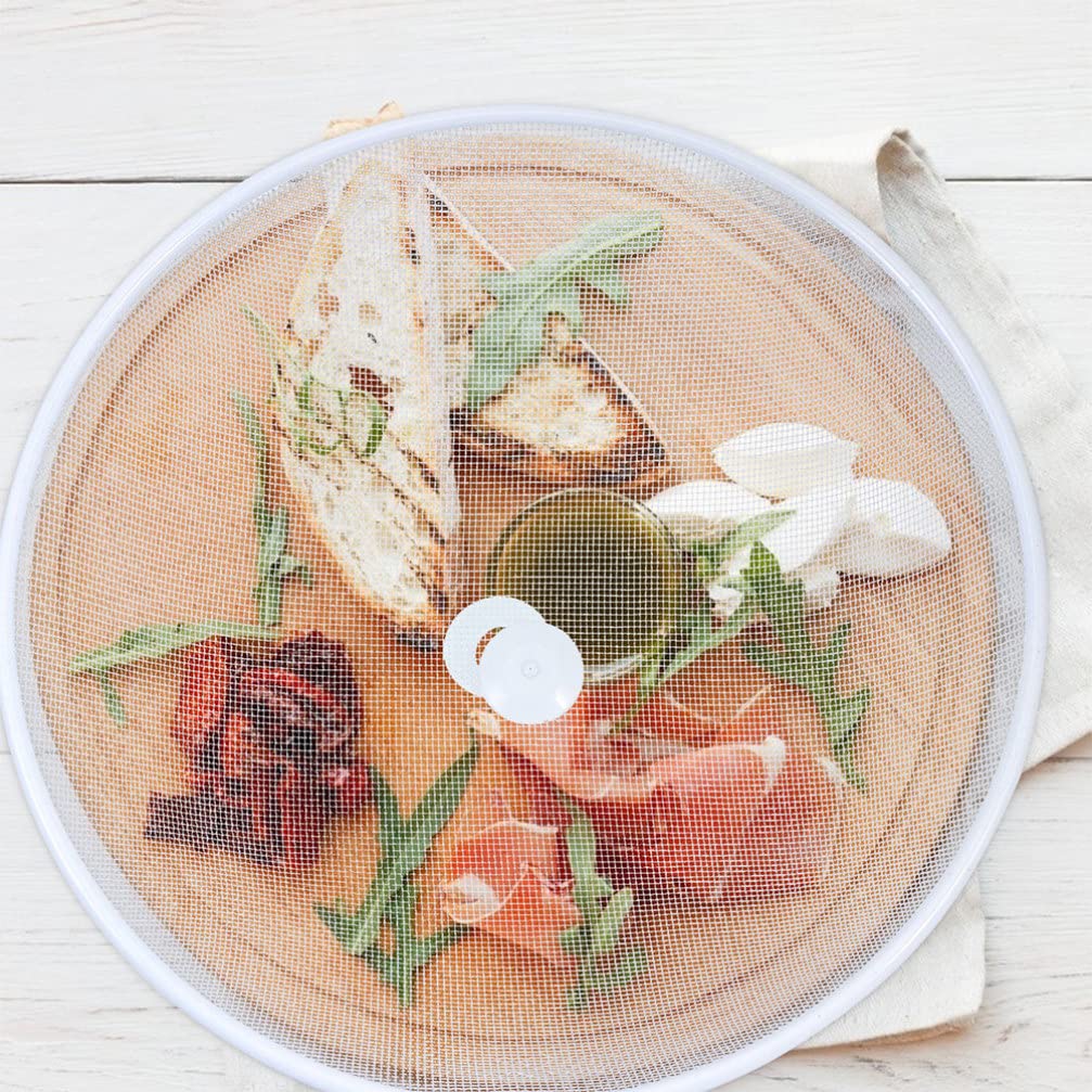 - Simple& Functional: Keeps flying off your food when entertaining and or dining outside. mesh screen and extra Thick Metal Rim your food and beverages are safe without affecting food taste as well as does these food covers accommodate any temperature covering, hot and or cold foods