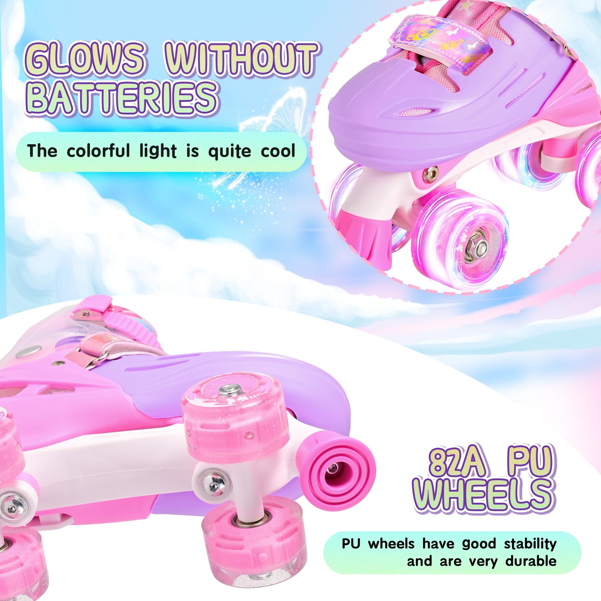 - BUTTERFLY DESIGN & LIGHTS: Bright LED lights flash as wheels turn—no batteries needed. Adds excitement to outdoor play. Colorful light-up Velcro and unique butterfly design make these skates stylish and fun. Perfect for girls who love trendy roller skates