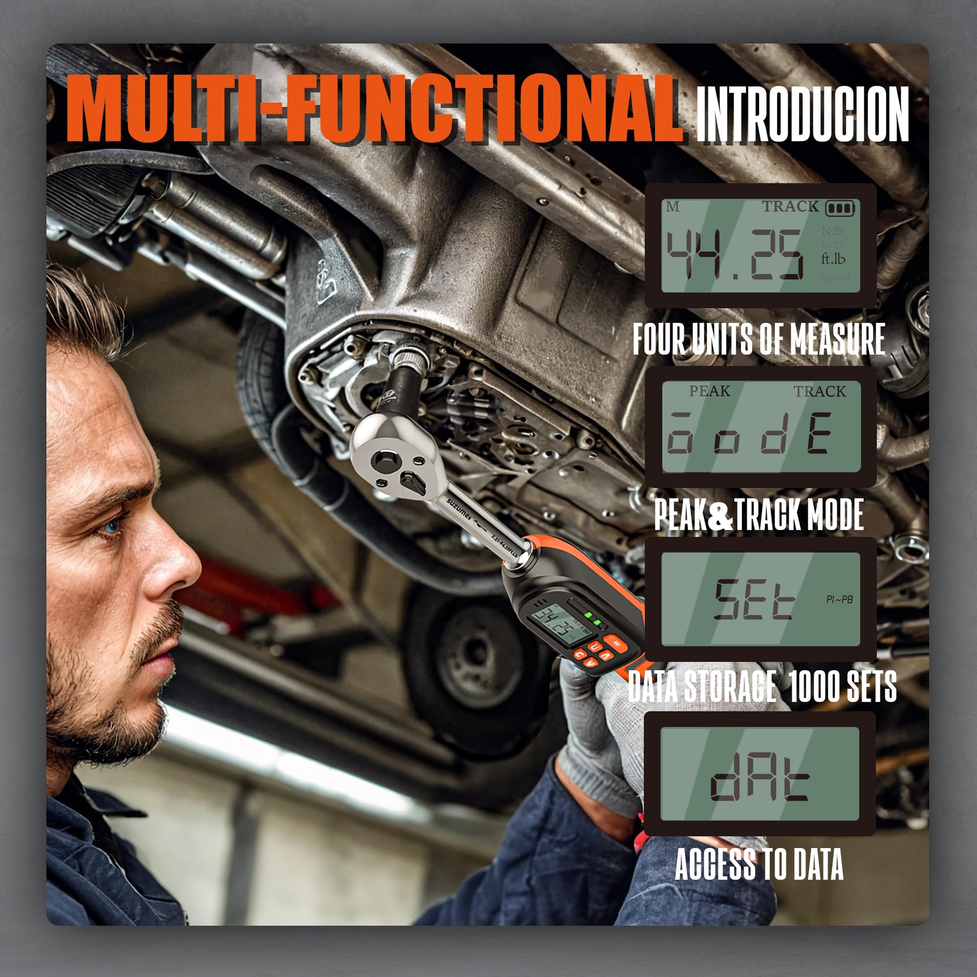 - [Versatile for All Your Projects] Whether you’re a DIY enthusiast or a professional, this 3/8 torque wrench digital has your back. With support for four measurement units (Nm, ft-lb, in-lb, kg-cm), digital torque wrenches is perfect for everything from car repairs to intricate machinery. And with the ability to store up to 1,000 data sets, you’ll always have your essential information at your fingertips.