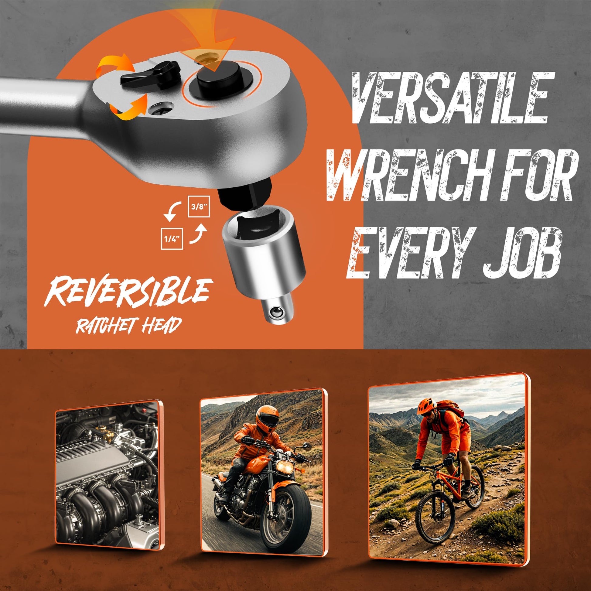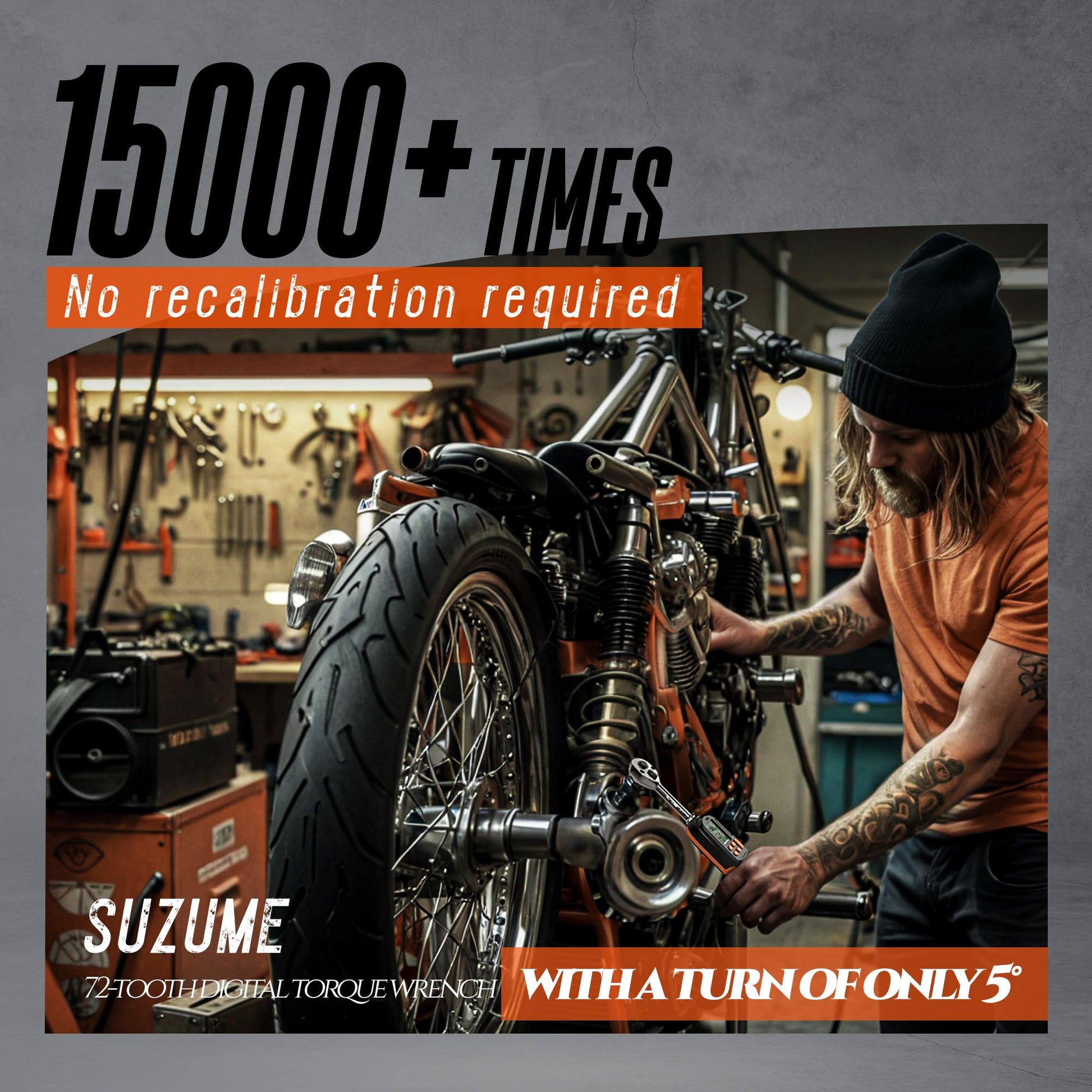 - [Peak/Track Mode] The SUZUME digital torque wrench 3/8" with sound and light is equipped with Peak and Track Modes to ensure precise torque application—Track Mode provides real-time torque readings on its digital display, allowing for continuous monitoring and adjustments during operation to achieve accurate tightness, while Peak Mode captures and retains the maximum torque value until reset, meeting required torque parameters. Designed for versatile use, it is well-suited for automotive and aircraft maintenance, as well as home projects. Its 72-tooth reversible ratchet head operates with a 5° swing arc.
