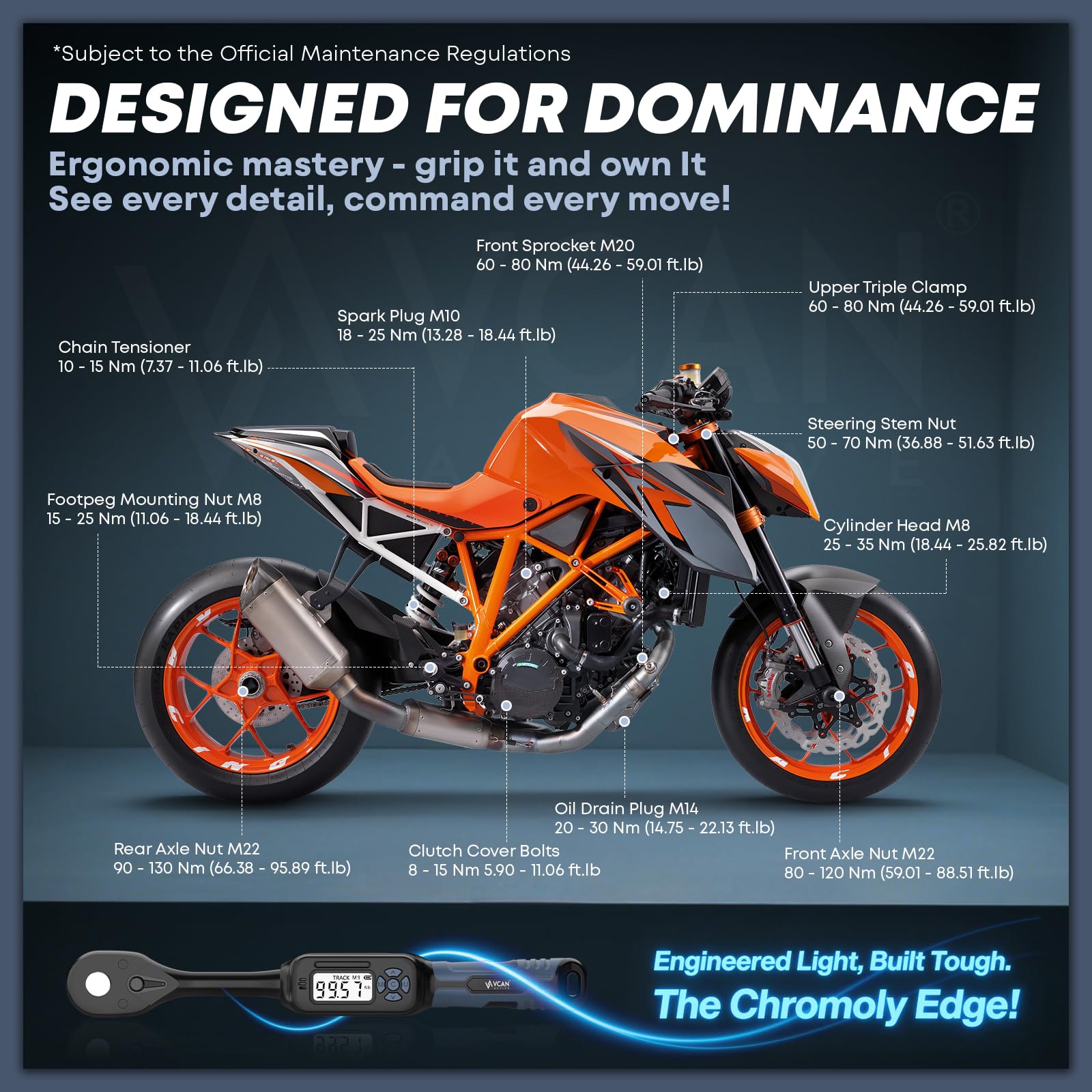 - 10 Preset Modes & 4 Units of Use Switching: offering 10 preset modes (M0-M9). Easily switch between N-m, kgf-cm, lb-ft, and lb-in for flexible torque measurement across different applications, all displayed on a high-definition LED screen for easy reading. equipped with replaceable accessories, effortlessly handling tasks from auto repair, bike repair, E-bike and motorcycle maintenance or even for gunsmithing