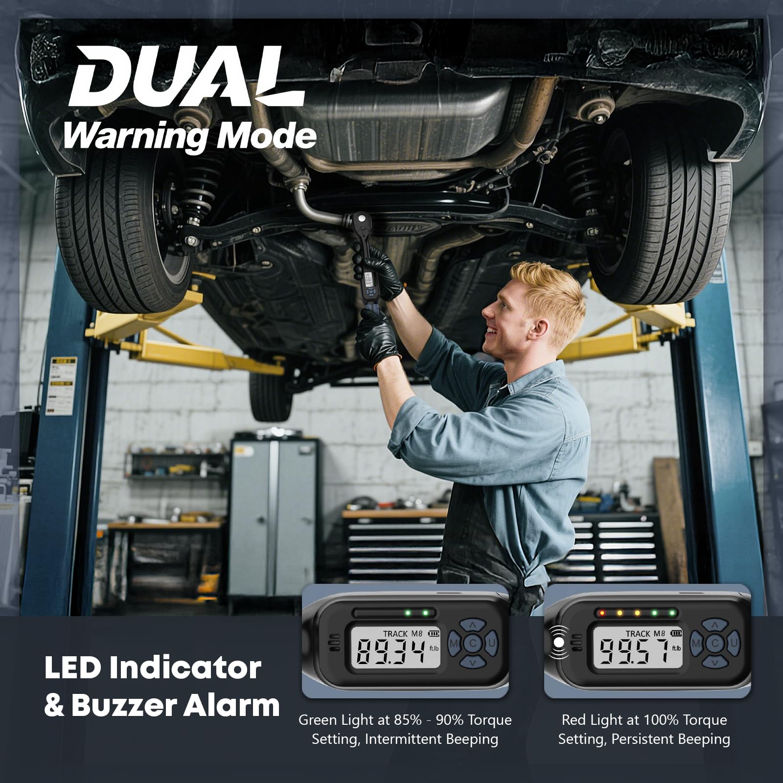 - 【±1% Accuracy & Large Digital Display】3/8 torque wrench digital delivers a rock-solid accuracy of ±1%. 3/8 digital torque wrench is5.02-99.6Ft.Lb After 50,000 rigorous tests, you can trust it to perform flawlessly over 30,000 uses—no recalibration needed. Get the job done right! The large LED display with auto-backlight ensures clear readings in darkness/low-light.Built for pros: rugged construction, flawless performance, and user-centric design for exacting automotive/industrial applications.