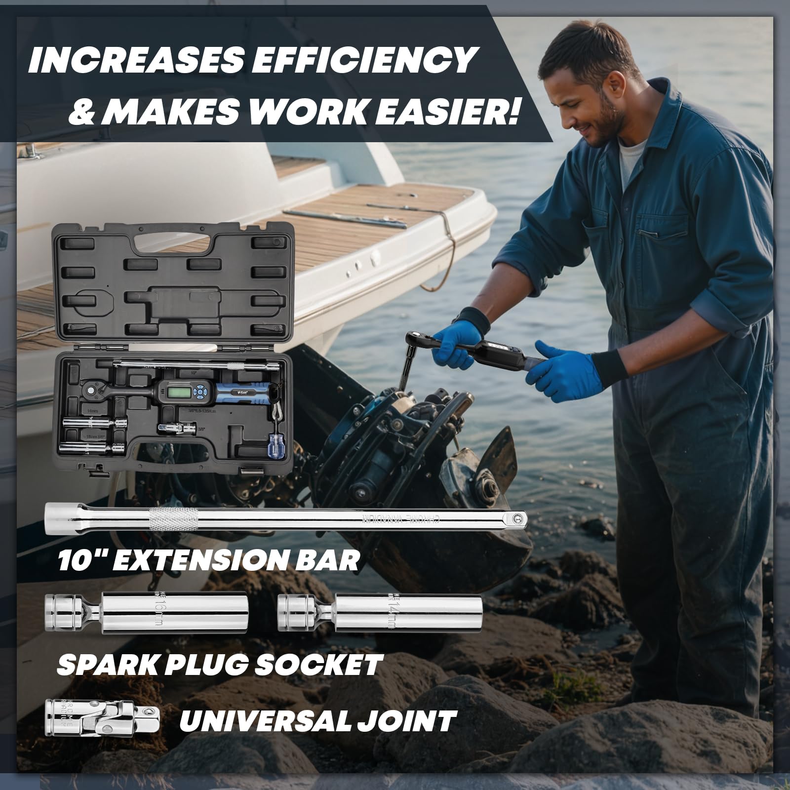 - Nice gift-Intimate Torque Wrench Set - Includes digital torque wrench x 1, Spark plug socket x2, Extension pole x 1 Universal joint x 1, screwdriver x 1, AAA batteries x 2, storage case x 1. And the extension bar help to reach awkward places. "Ultimate Digital Torque Wrench Set: Master Bike, Motorcycle, Car, Aircraft & Yacht Repairs + Home DIY! Precision Tool for Pros & Beginners – Tackle Refrigerators, Heavy-Duty Jobs & Everything In Between.