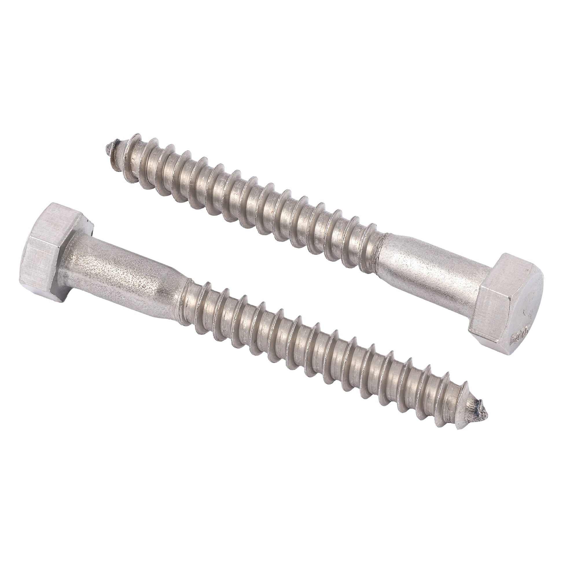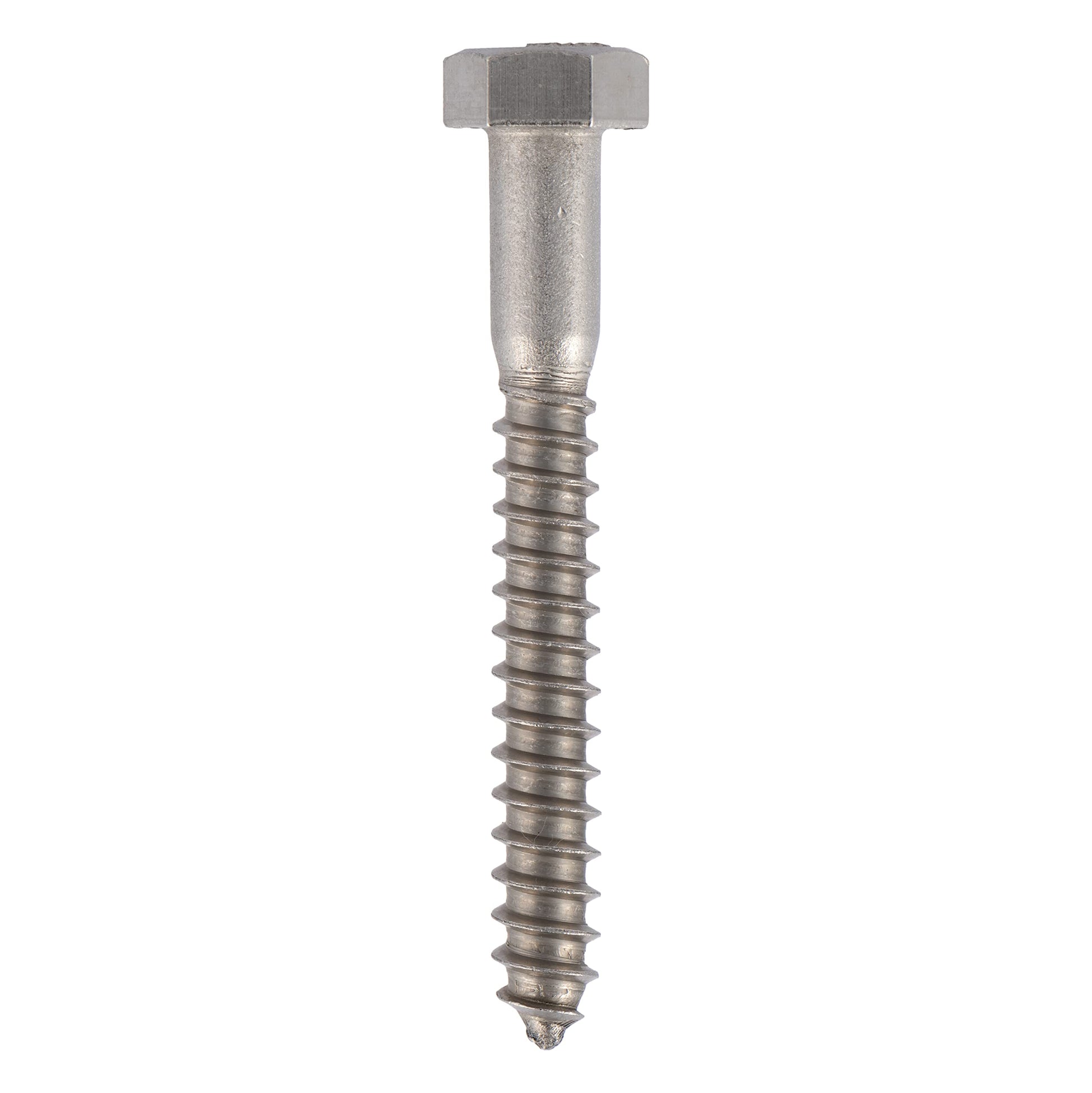 Details: Makers Bolt 3/8 in x 4 inch Stainless Steel Hex Lag Screws (25-pack) 18-8 SS, 304, Heavy Duty Wood Screw, ASME B18.2.1 Commercial/Industrial Grade