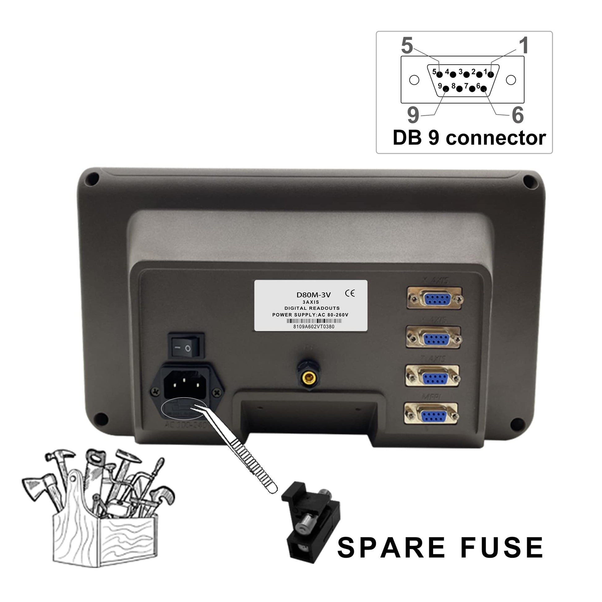 3 Axis DRO LCD Screen Metal Shell Digital Readout Display for Bridgeport Mill MIlling Machine Lathe Machine Tools (D80M-3V RPM Hall Sensor)