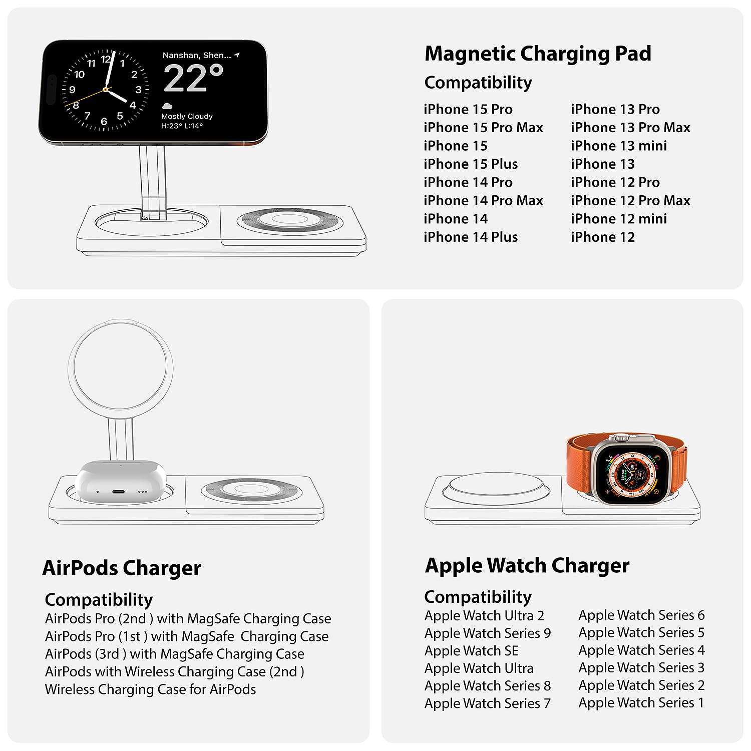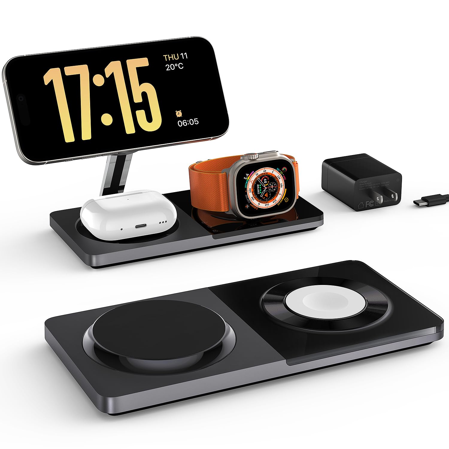 - 3-in-1 Charging Station with MagSafe: Charge your iPhone, Apple Watch, and AirPods simultaneously. Eliminate cable clutter and keep your desk organized