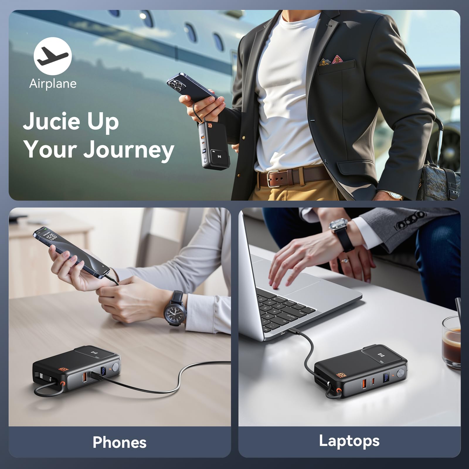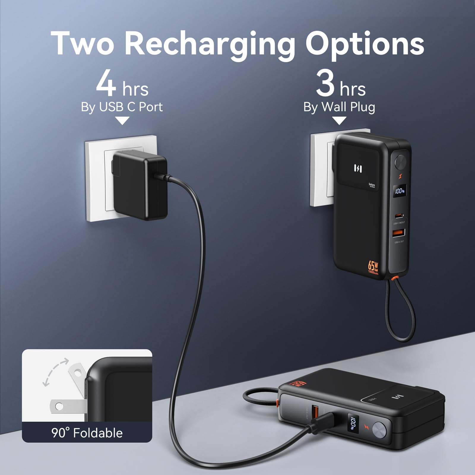 - 【65W Max Fast Charging】With two fast charging methods: 65W (max) wall charger and 35W (max) portable power bank. The 65W Wall Charger Mode (Plug-In): ideal for high-power devices like laptops. 35W Portable Charger Mode (No Plug-In): perfect for smartphones (such as iPhone/Samsung) and earphones on the go.
