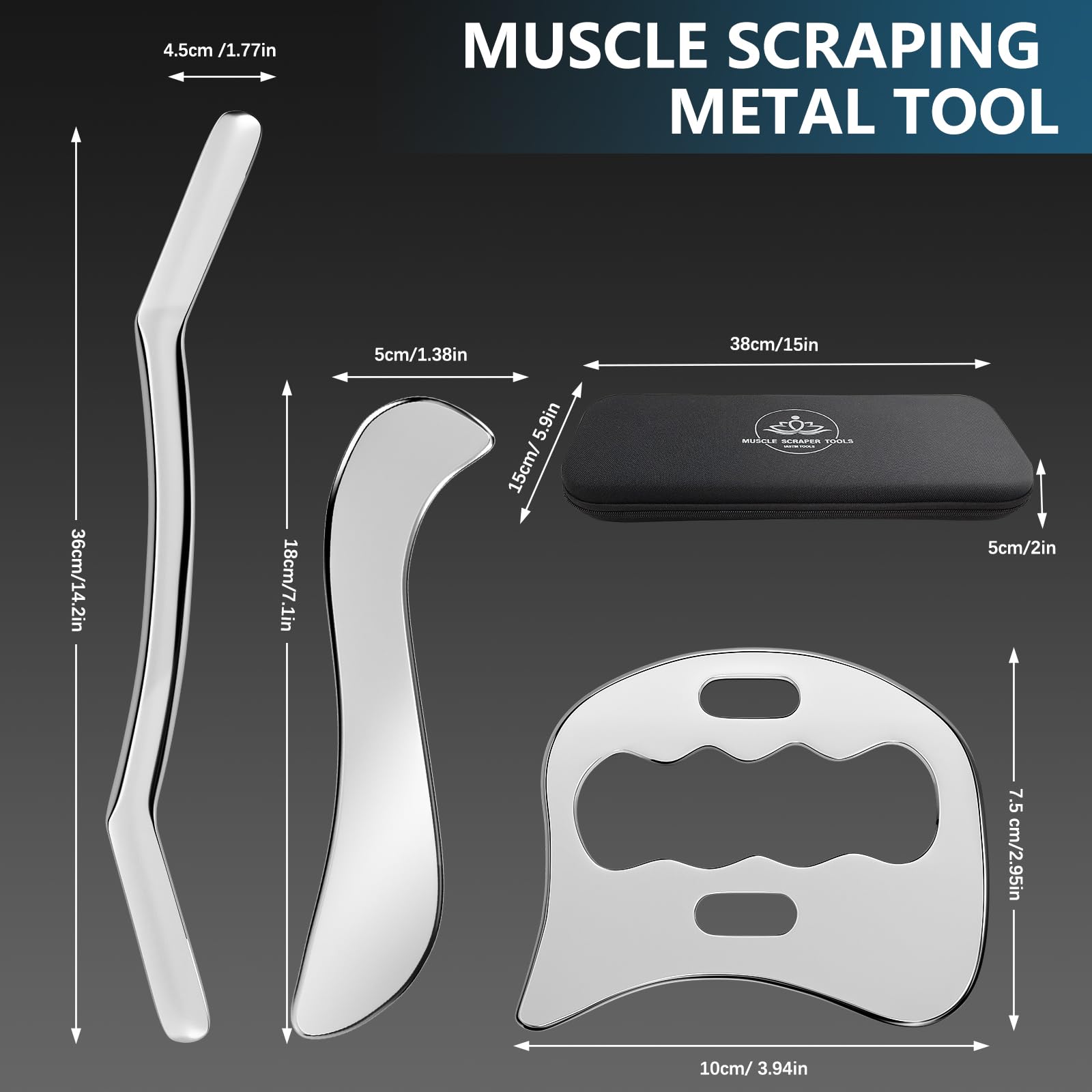 3-in-1 Stainless Steel Gua Sha Muscle Scraper Tool Set,Metal Scraping Tools,Myofascial Scraping Tool for Physical Therapy,Facial/Body Tools&Derma Edge Massage Tool