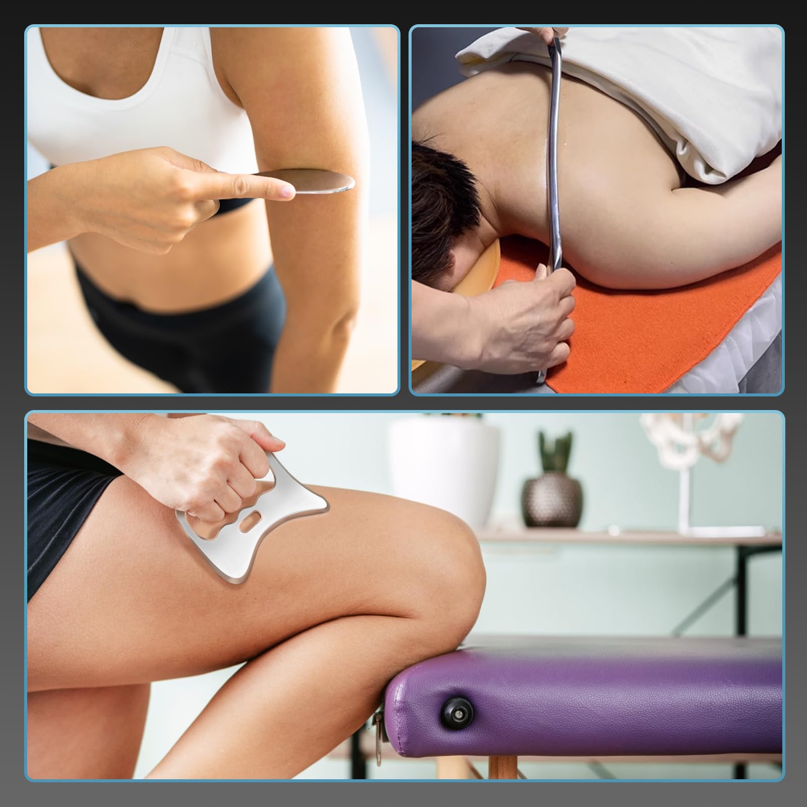 - This set of massage tools features a multi-functional design and is suitable for large, medium and small body parts, such as the back, forearm, neck, calf and pectoral muscles. When combined with the techniques of guasha massage, it is very applicable to home care for the body and the needs of combating muscle pain, soreness and tension.