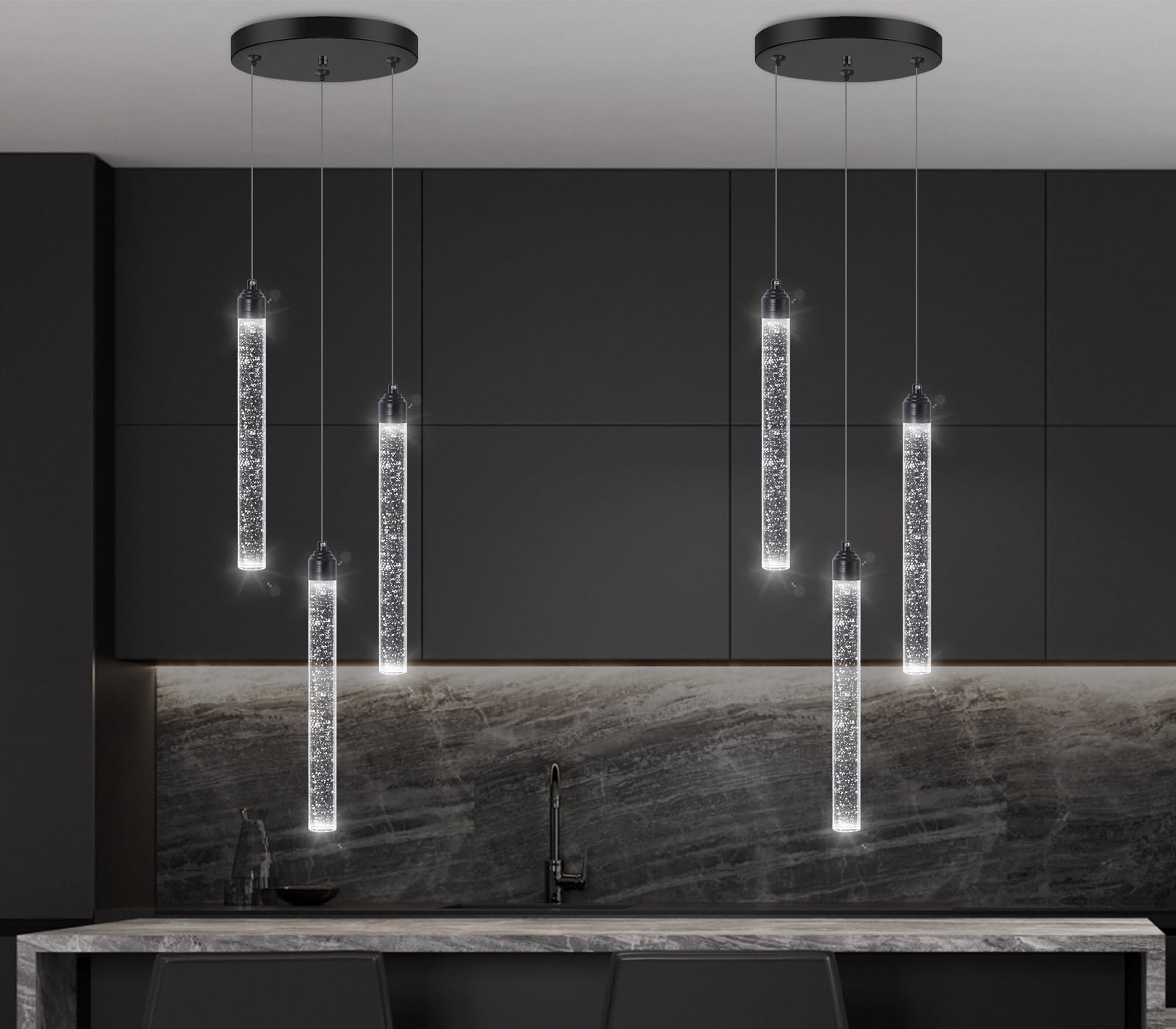 3 Light Black Pendant Lighting Mini Chandelier for Kitchen Island Modern Crystal LED Pendant Light Adjustable Dimmable Pendant Light Fixture for Dinning Room Bedroom Ceiling Hanging Lights 2700K 6000K