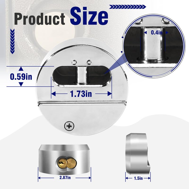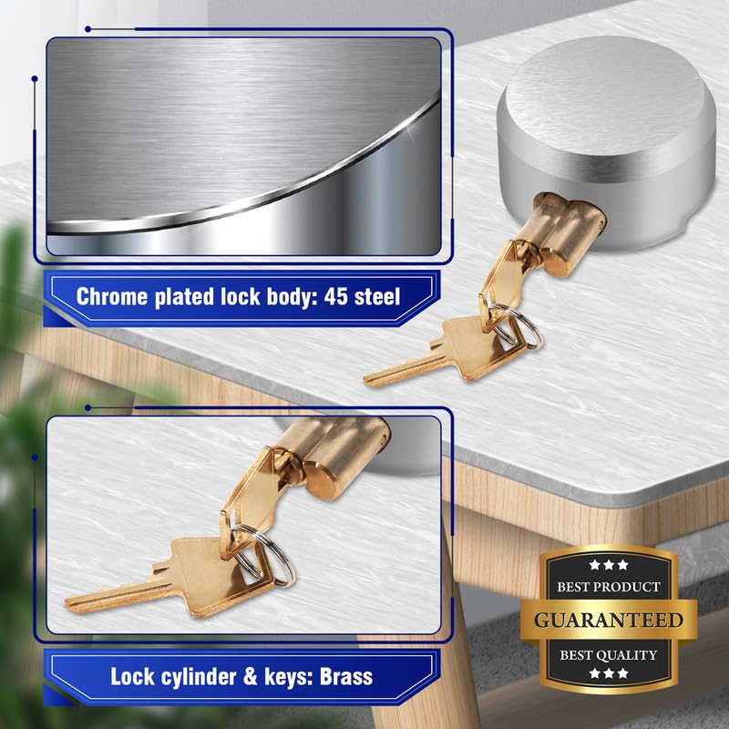 - Heavy Duty Puck Lock Material: Hockey puck lock are made by tough steel with chrome surface. Anti-corrosion, anti-cut, anti-pry, anti-rust etc