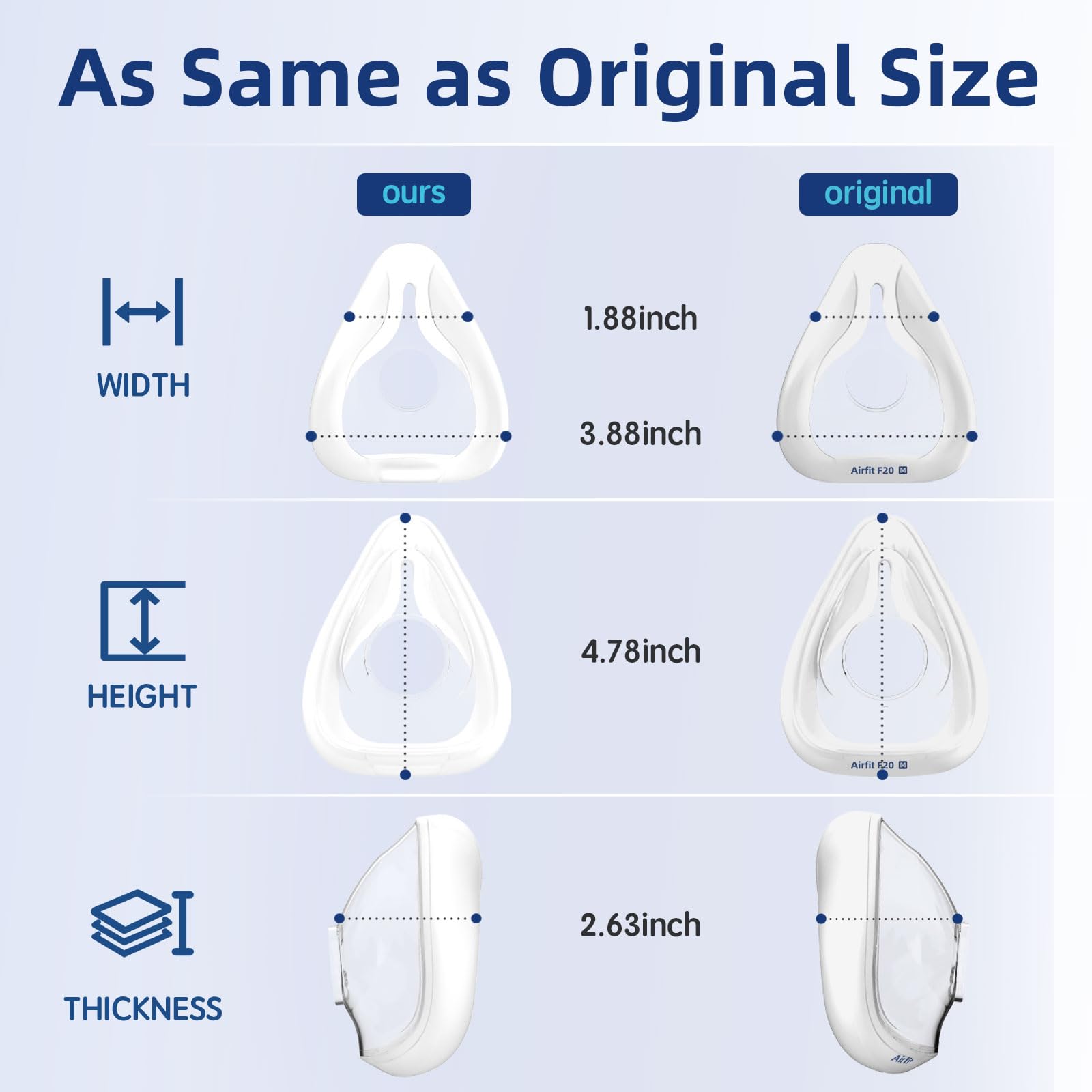3-Pack Replacement Cushion for ResMed AirFit F20 Large, Compatible with Original Airfit F20 Frame, Covers Nose and Mouth, Reliable Seal & Perfect Fit