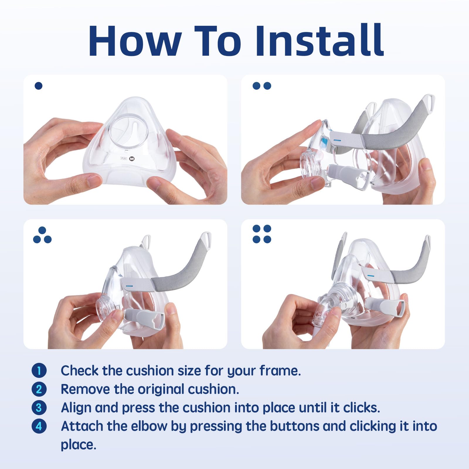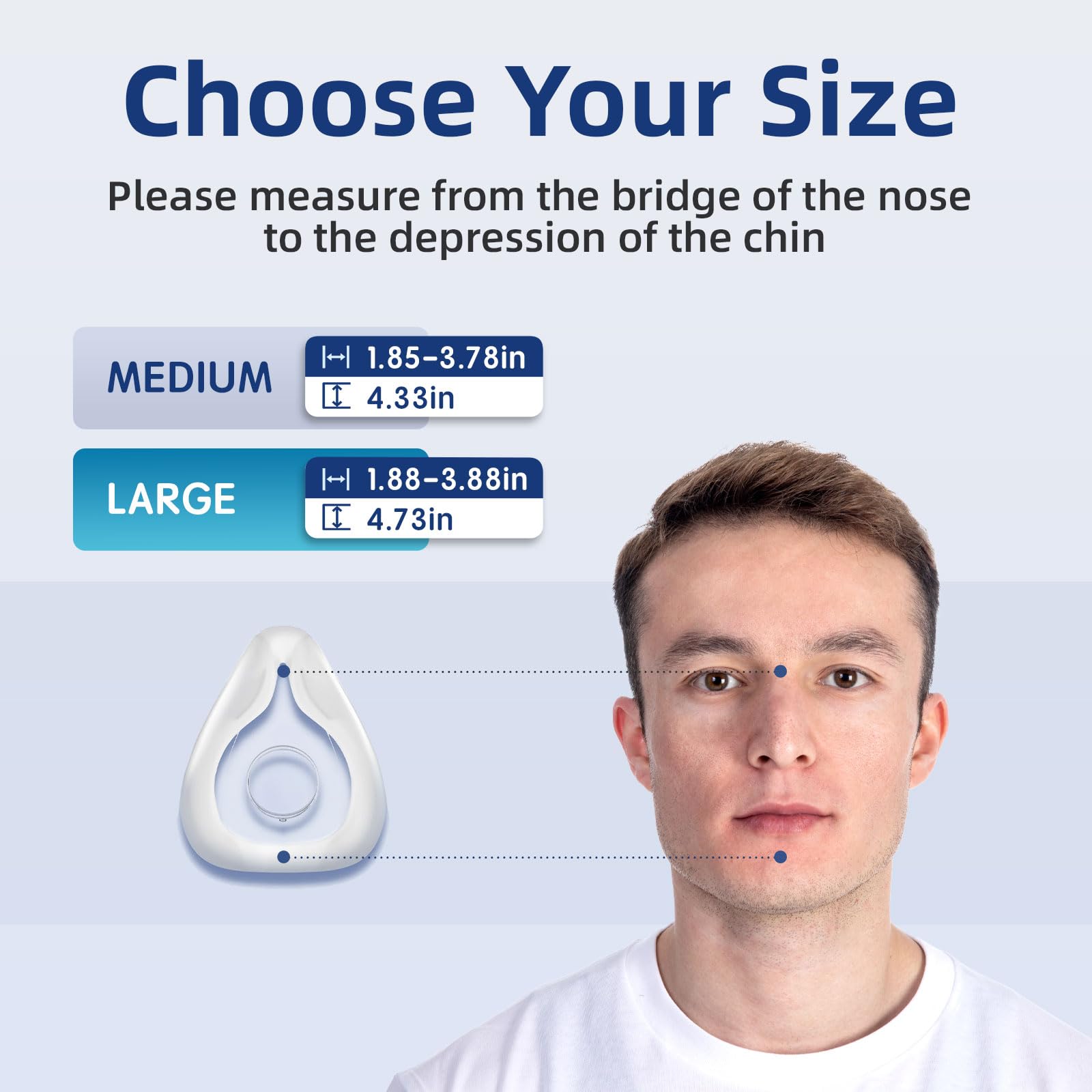 - Comfortable Fit: Made from medical-grade, odorless silicone, it is soft and comfortable. The ergonomic design ensures a lightweight, pressure-free fit. The full cushion design covers the nose and mouth for enhanced comfort.