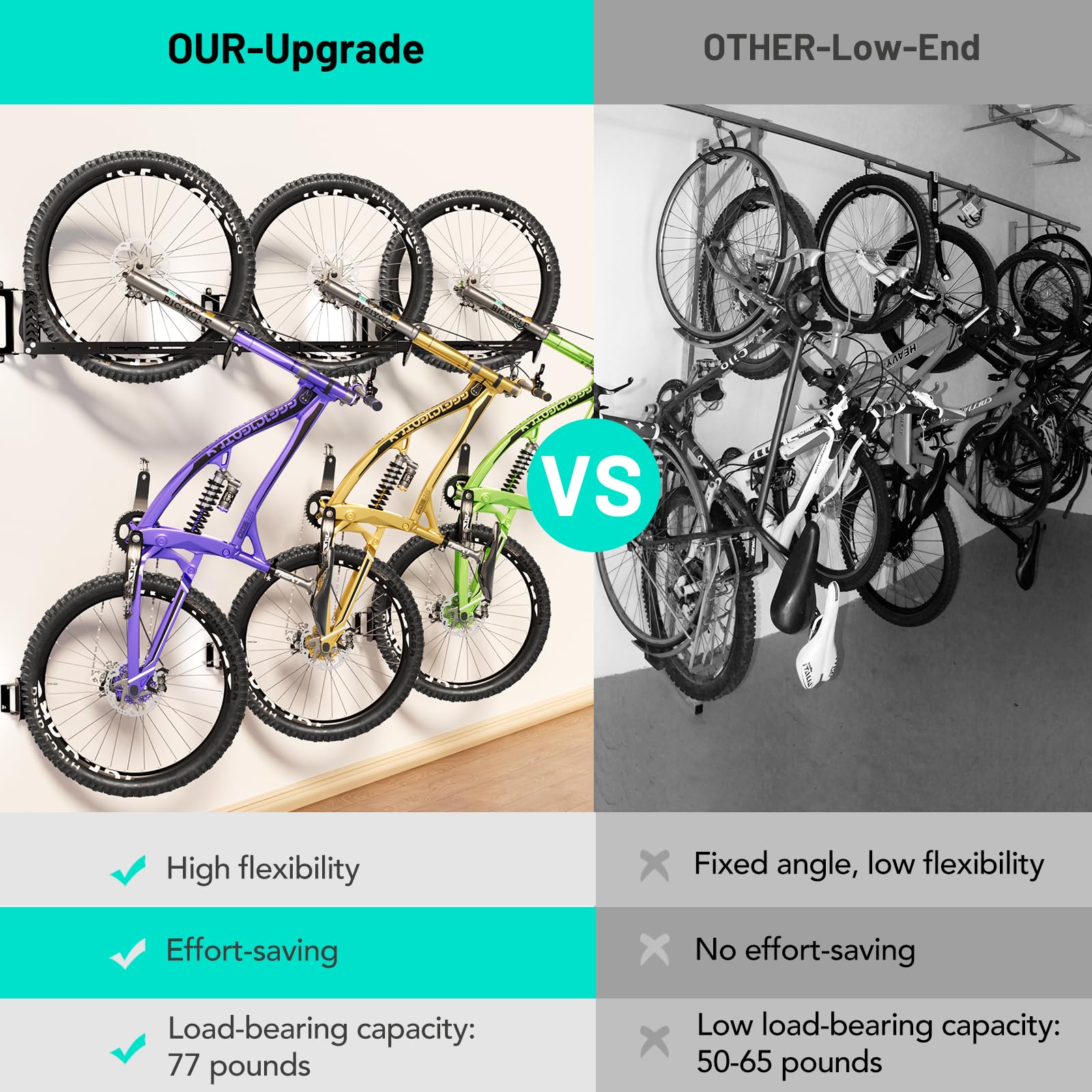 - Sturdy Steel Structure:Made of durable alloy steel, this bike wall mount supports up to 35 kg/77 lbs, providing a sturdy and long-lasting storage solution for your bikes.