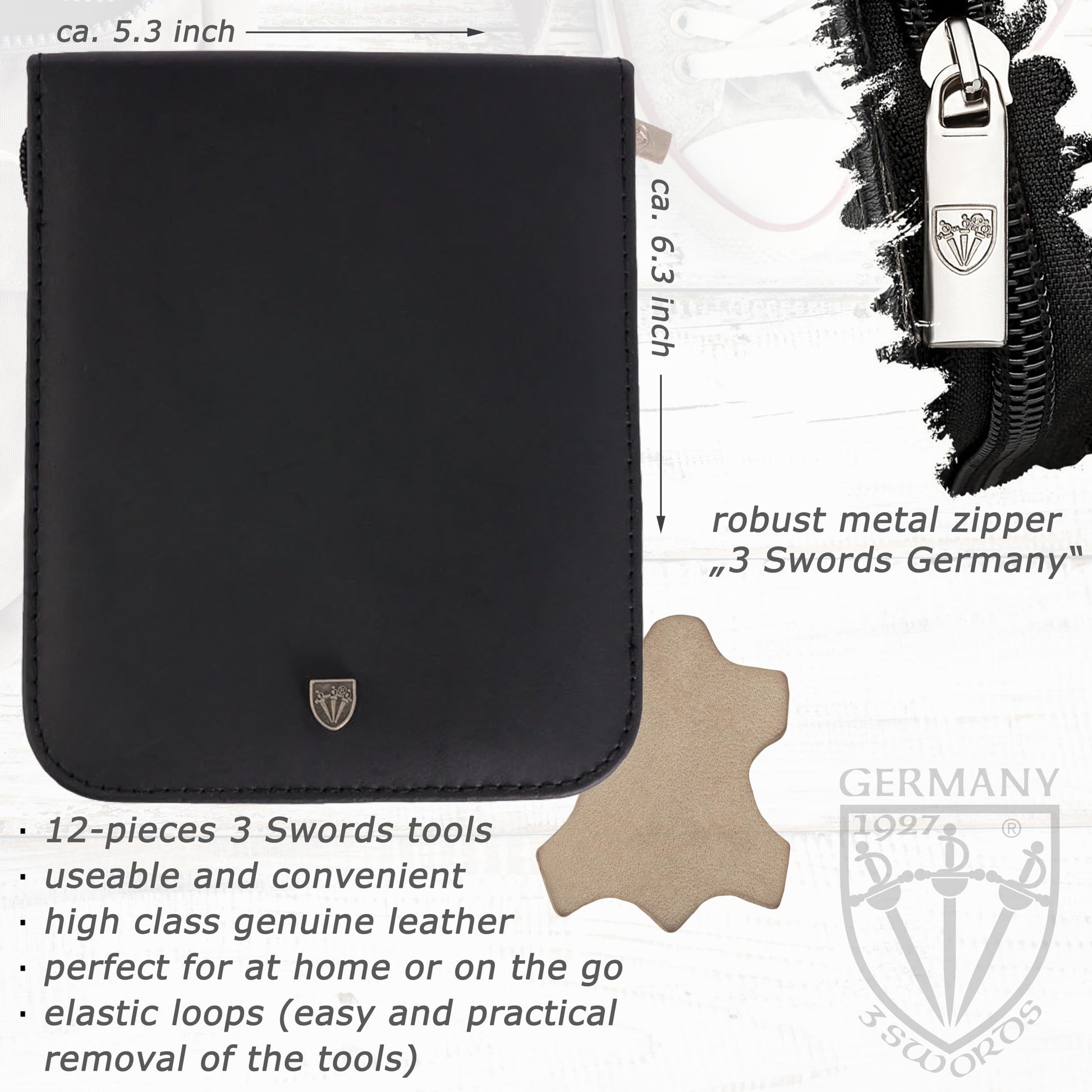 3 Swords Germany - brand quality 12 piece manicure pedicure grooming kit set for professional finger & toe nail care with black genuine leather case - Made in Germany