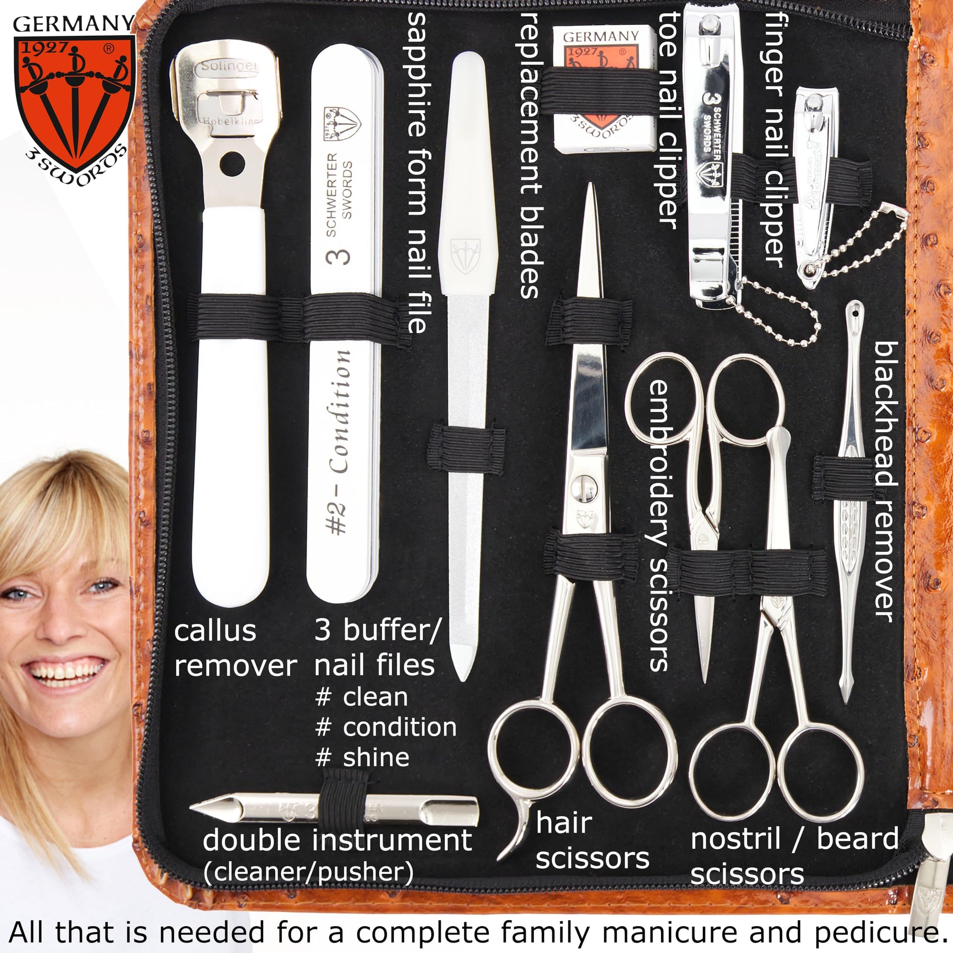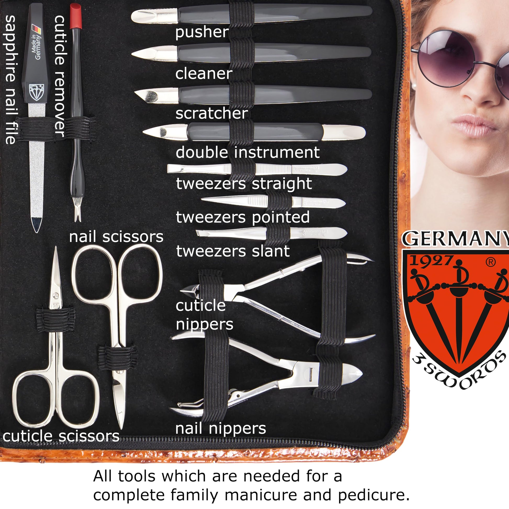 - NAIL CARE KIT from 3 Swords Germany with professional manicure and pedicure tools. Our sets for home and travel use convince trough highest levels of quality, modern design, durability and German engineering combined with a first class customer service.