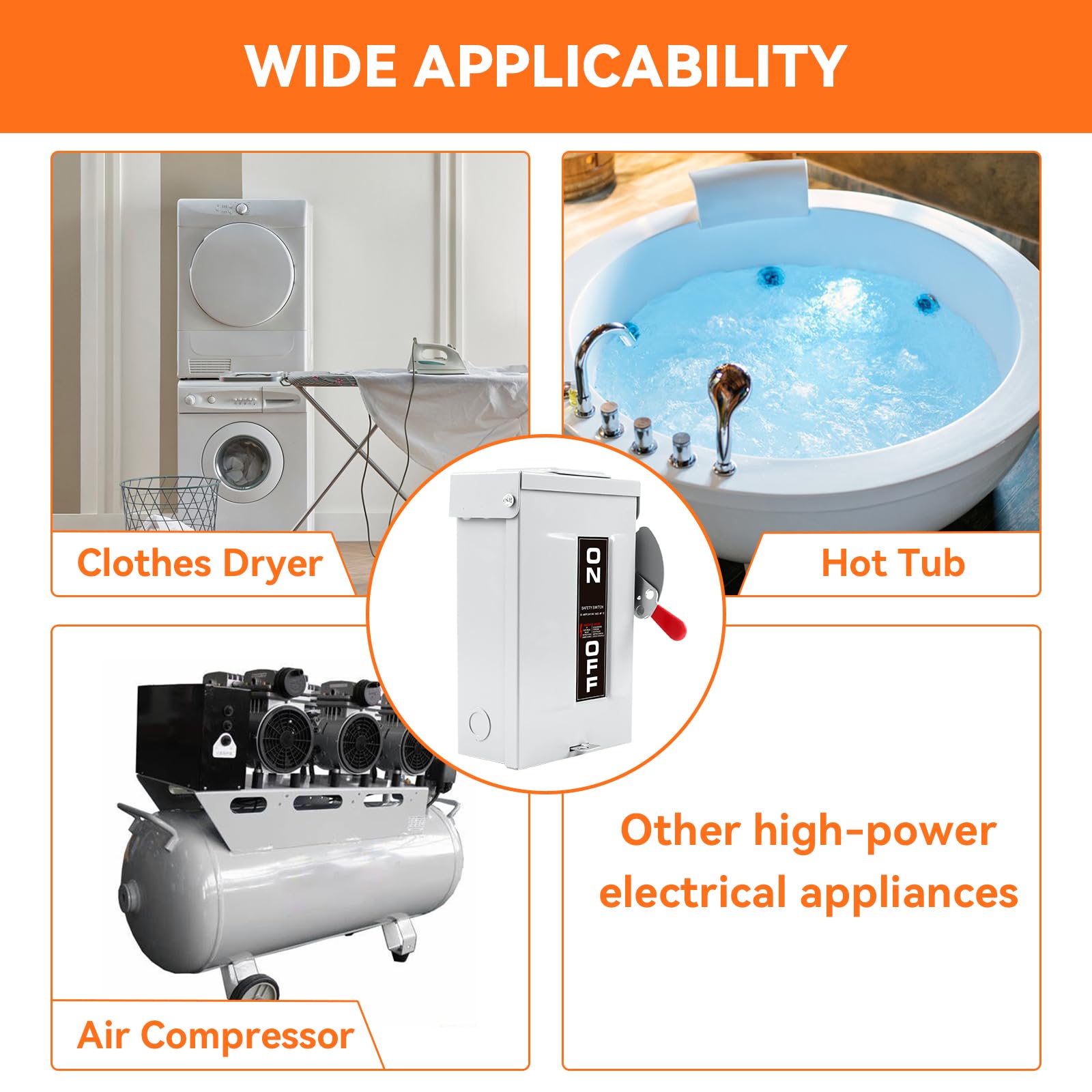 30 Amp Disconnect Switch,3 Pole Safety Switch,Non-Fusible,Indoor&Outdoor,Meeting NEMA 3R Standards,Galvanized Steel,Anti Corrosion and Rust Prevention,10-Year Warranty