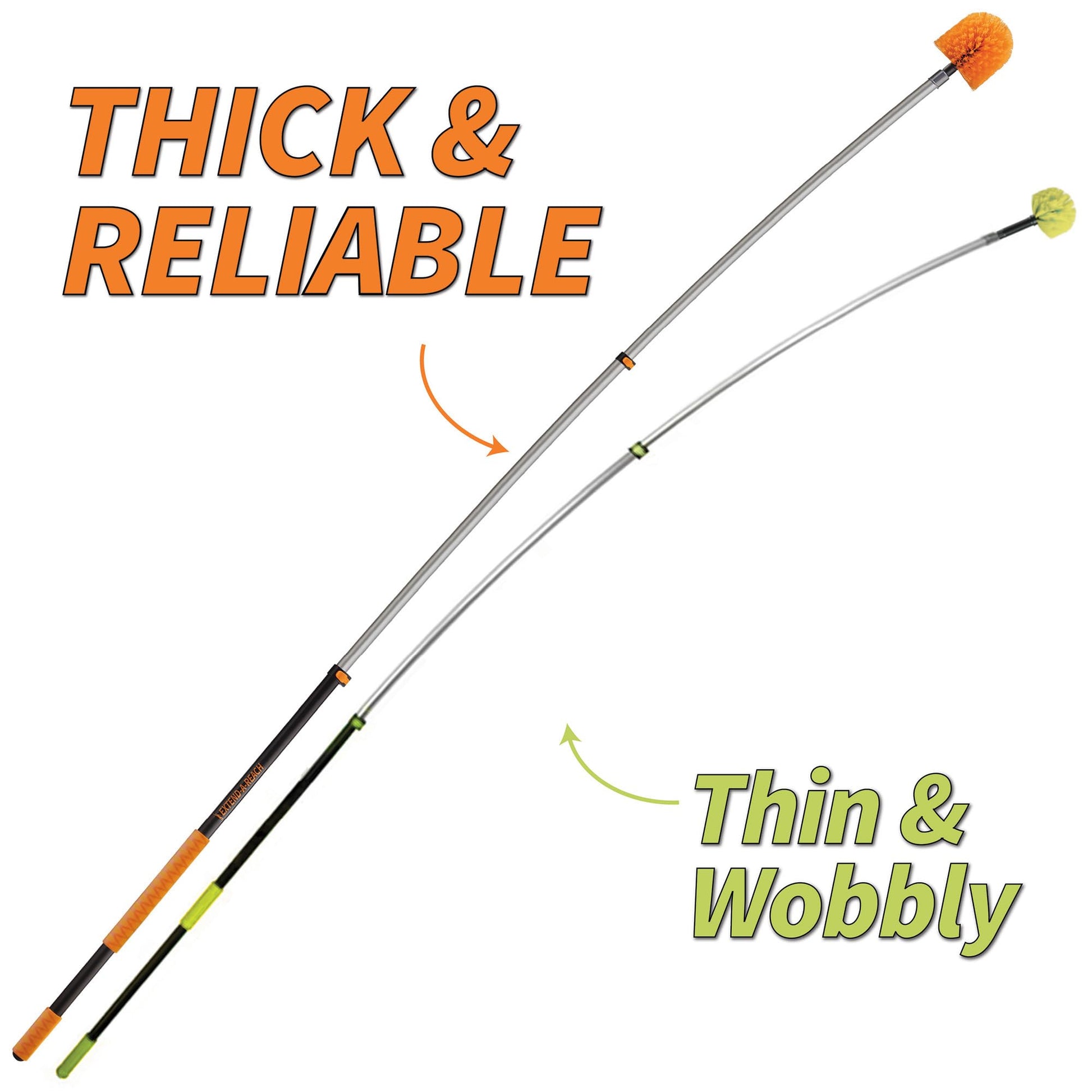 - TO INFINITY AND BEYOND » 4-Piece ALL-INCLUSIVE extendable duster kit for high ceilings gives you up to 30 foot of reach, making all your hard-to-reach tasks super easy. This set includes a 24-foot extra-thick aluminum telescopic pole, spider web cleaner, microfiber feather duster, and a flexible fan blade cleaner. If your home has high ceilings, floor-to-ceiling windows, or other difficult-to-clean areas, our Extend-A-Reach cleaning kit is the ultimate answer for a tidy home environment.