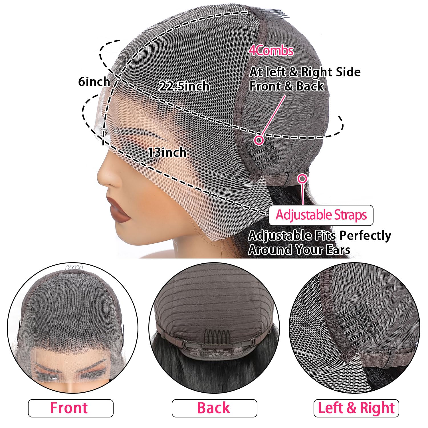 - 13x6 Lace Front Wigs Human Hair Detai:13x6 HD Transparent Swiss Lace Frontal Wigs Human Hair, 100% Hand-Crafted Technology, Simulated Scalp, No Matter What Skin Tone, Blends Perfectly into Your Skin.